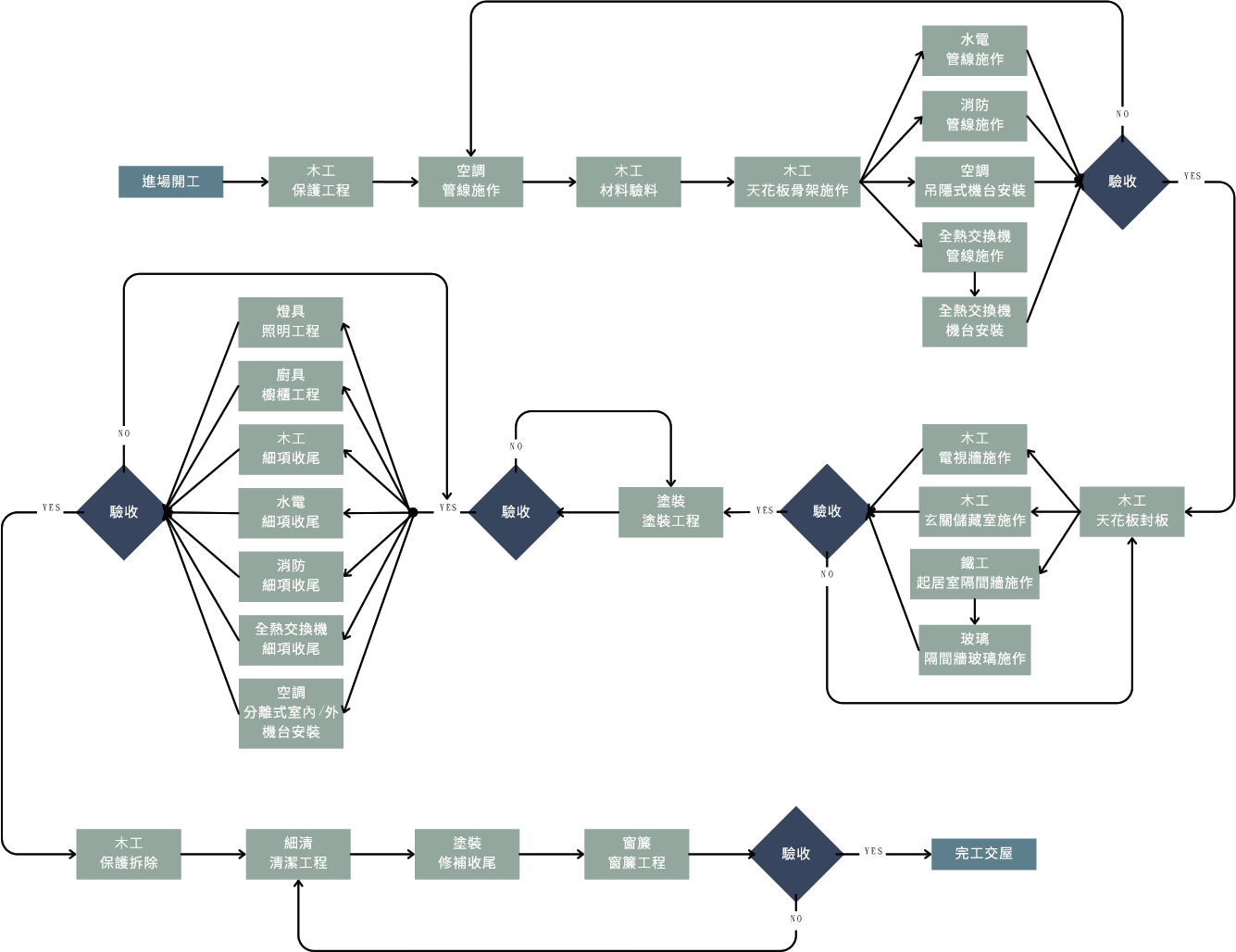 施工圖說定案後,隨即依裝修計畫安排各工班進場。