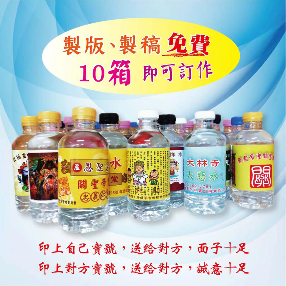免費代製版面,可將寶號、地址、電話、活動(例如點光明燈,法會時間)印於瓶身。可按不同活動製作不同的版面。