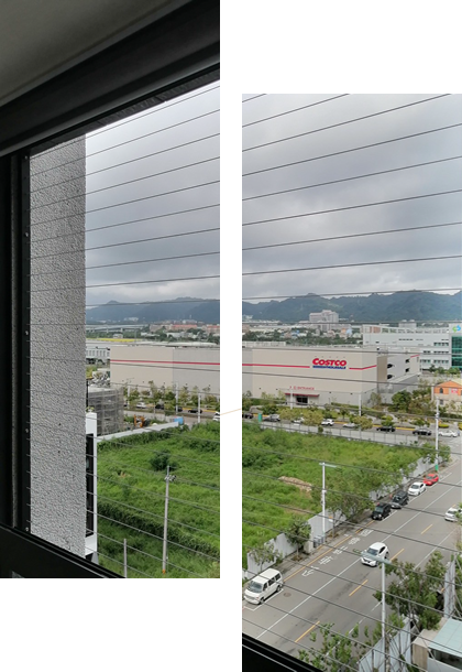 隱形鐵窗則以細緻的不鏽鋼鋼索取代傳統鐵條,