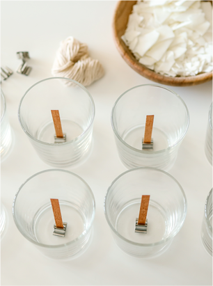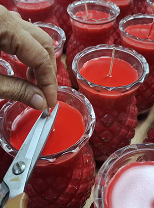 剪燭芯至合適長度,檢查蠟面平整與杯壁是否清潔。