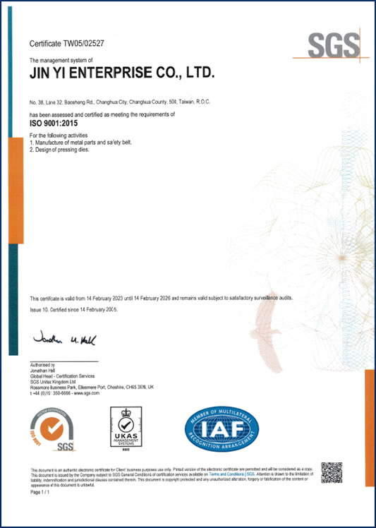 進羿深知客戶滿意是企業永續經營的關鍵,為確保提供最值得信賴的產品與服務,我們導入並通過ISO 9001:2015國際品質管理標準運作,並取得SGS品質認證,全面強化品質保證體系。