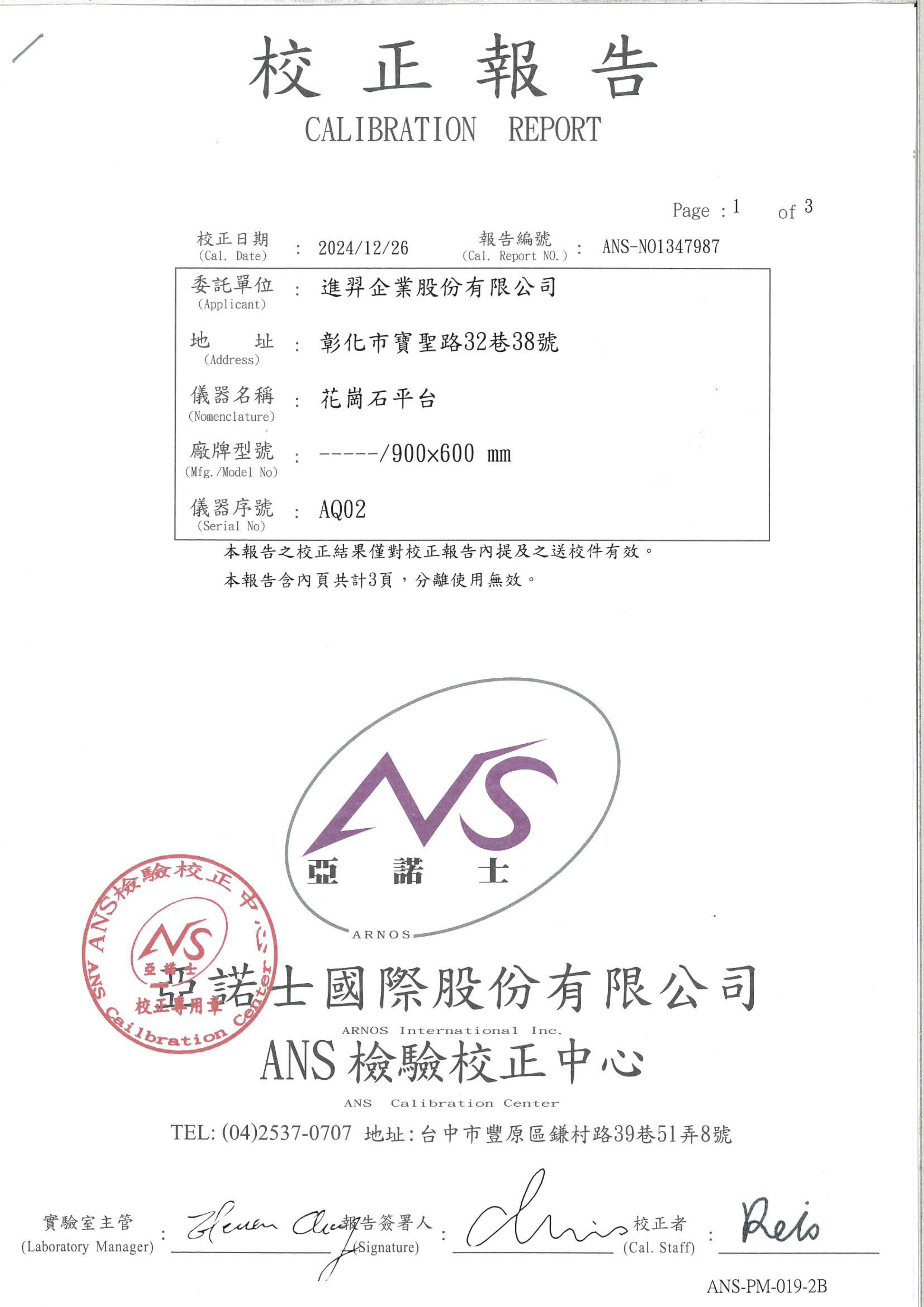 - 進羿秉持嚴謹的品質管理態度,致力於在規定時間內確實執行檢查、測試與校準作業,以確保產品品質穩定且符合各項標準要求。相關作業內容說明如下: