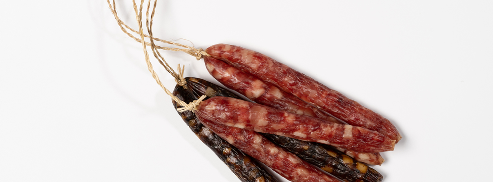 選用豬後腿肉,搭配特級高粱酒與新鮮鵝肝等食材風乾數日,口感紮實有嚼勁,回甘不油膩。