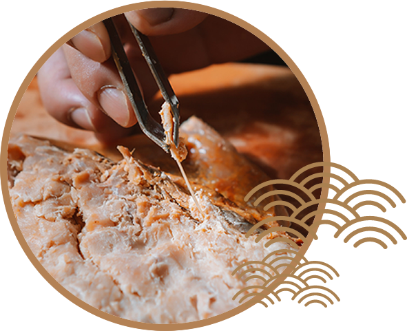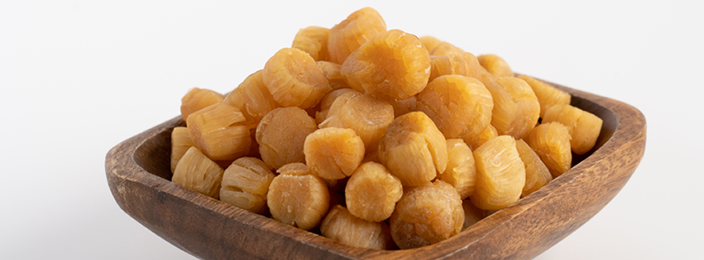 肉質鮮嫩緊實,富含天然優質蛋白,經蒸汽細火淬煉,將海味鮮香層層濃縮,整顆壓碎仍保有完整纖維,入口香鮮不拔絲。