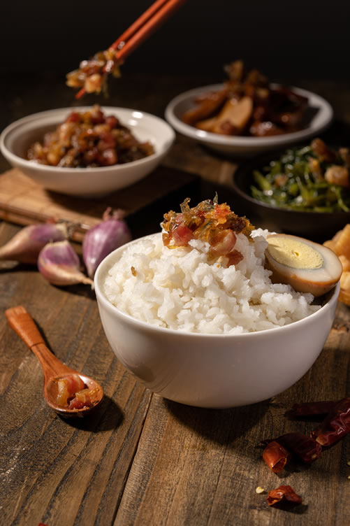 嚴選台灣豬後腿肉製成,挑選有肥有瘦火塊部位,火腿富含18種胺基酸,鹹香提味,炒時香氣逼人,讓醬體味道更有深度。