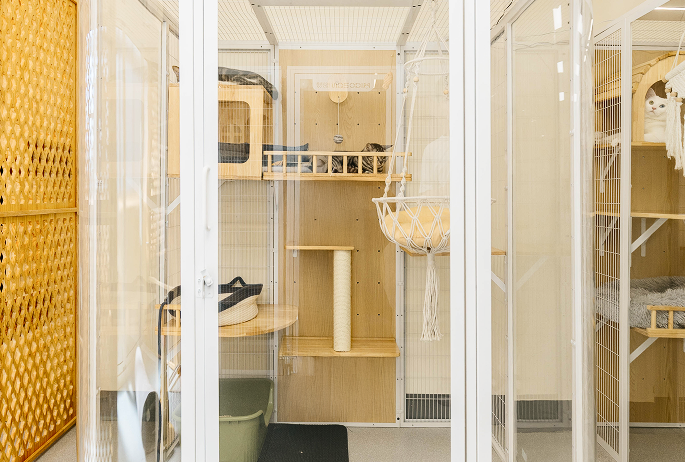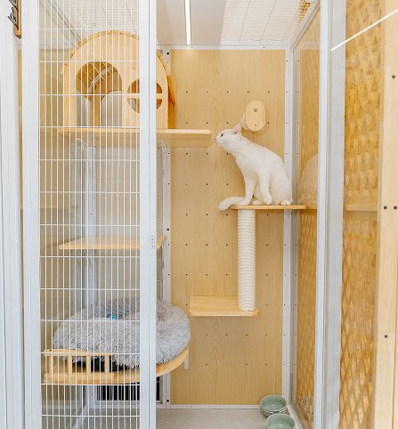 我們為每位毛孩打造舒適、安全的住宿空間。寵物在白天皆可於開放式活動區域中自由探索、伸展筋骨,晚上則會回到各自獨立的專屬房間安穩入睡,確保休息品質與個體安全。每間房型空間皆保持良好通風與整潔,並規劃無壓迫的設計,讓毛孩們在住宿期間也能感受到如家般的自在與安心。