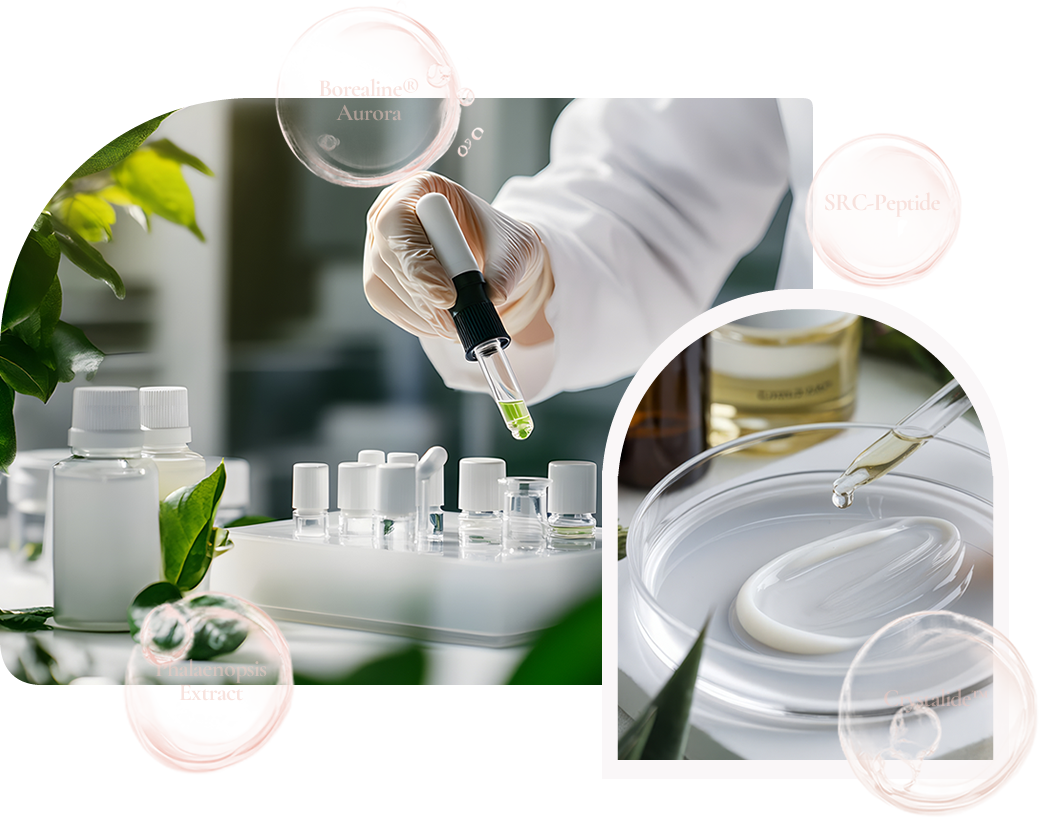 我們結合了國內外頂尖專業研發團隊的力量,每一款產品都堅持選用來自歐、美、日、台等原料知名大廠,並使用加拿大極光松樹萃取、法國水晶高光肽、美國DermalRX®SRC煥膚寡肽、台灣蝴蝶蘭精萃,貫穿全系列產品,使【宏寶家賀美容國際】賀麗美系列的保養品更加獨特與不凡。