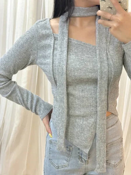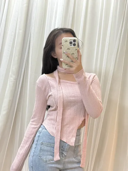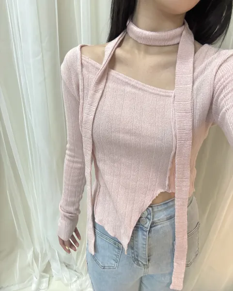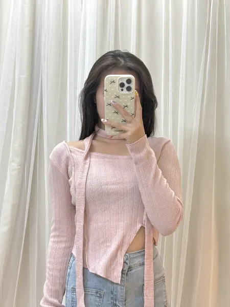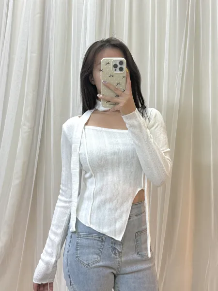 • 正韓-氣質溫柔掛脖不規則下擺上衣