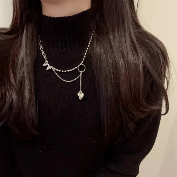 • 直播爆款-圓珠重工風蝴蝶結愛心項鍊