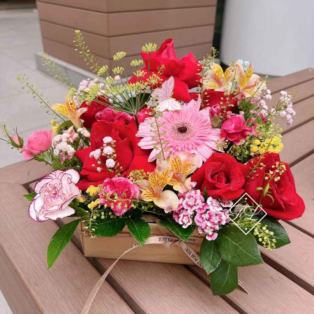 • 紅色系鮮花花籃 FND2072