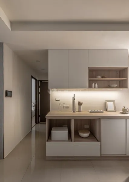 蒔頤將根據屋主的個人需求量身打造設計方案,以保留專屬電子衣櫥和掃地機等電器的安置空間。在設計中,我們將運用空間設計技巧,保留屋高放大的視覺效果,並注重動線的規劃、收納空間的應用,以及通風採光等方面,打造一個清爽且功能齊全的減壓住宅。