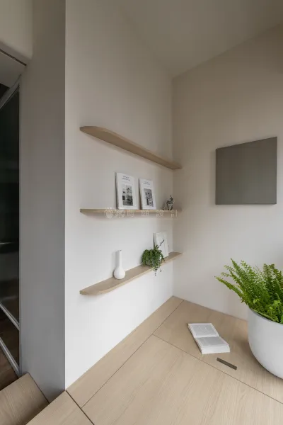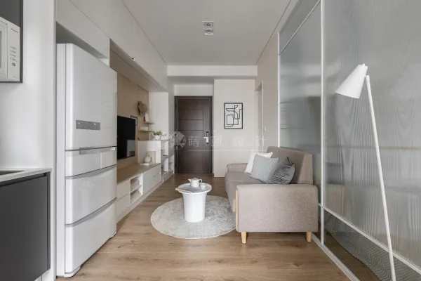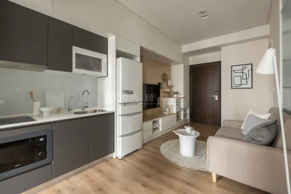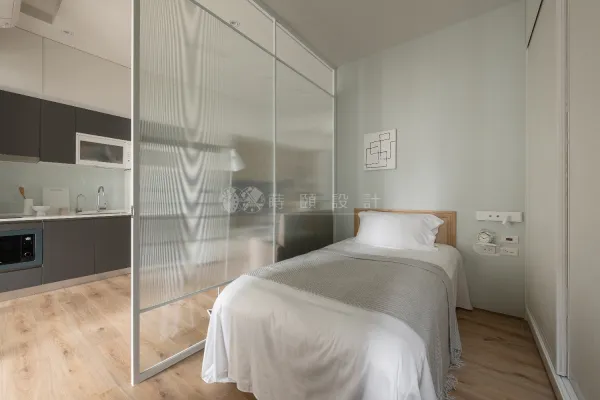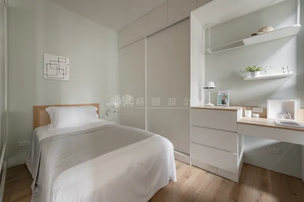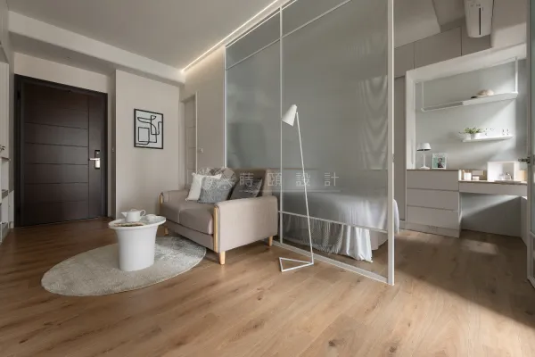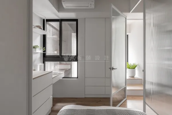 我們依循屋主的生活習性與物品數量,設定空間動線同時,配置充足收納區塊,放大採光區塊延伸視覺,兼具多元化利用的空間坪效,幻化出輕盈明亮、溫暖清新的簡雅小天地。