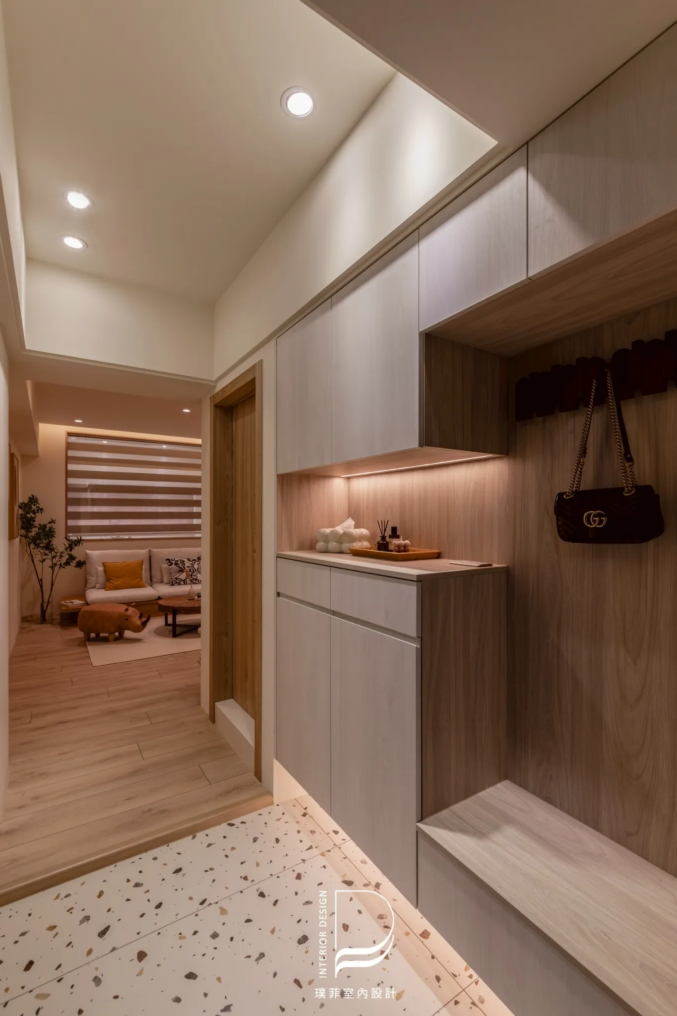 原木奶油色調結合打造出溫暖、溫和舒適的空間