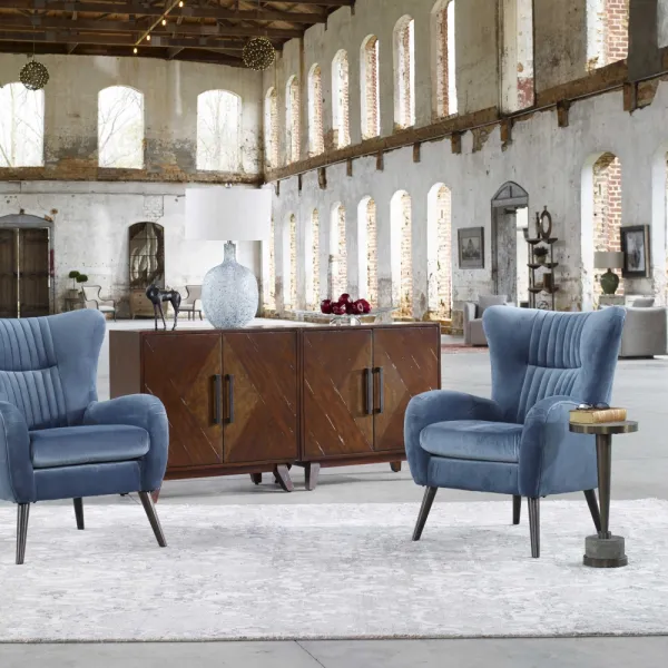 採用中世紀風格形體所設計,寶石藍的天鵝絨材質,及espresso色的腳,增添現代摩登感,為您的空間增添清新的寶石色調,還有符合人體工學設計角度,座感舒適。
