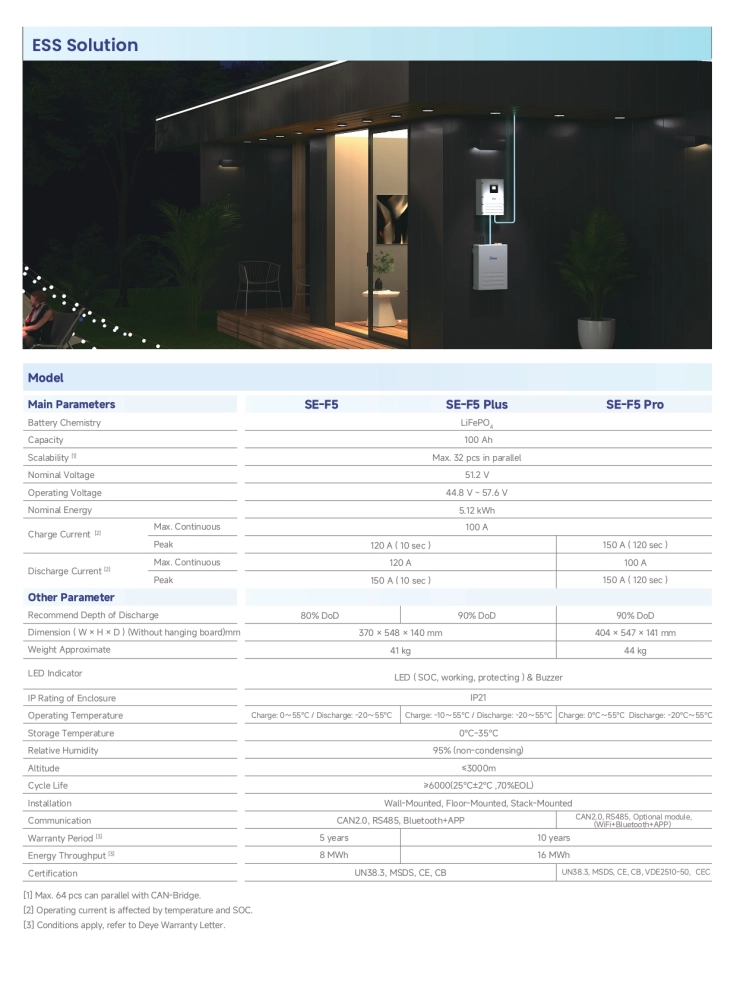 | SE-F5 / Plus / Pro | 5.12 kWh | 100 Ah | IP21 | 5 ~ 10 年 |