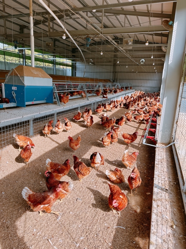 母雞自由環境中活動,享受陽光、呼吸新鮮空氣