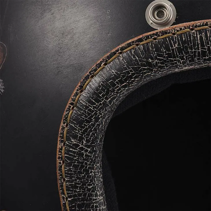 使用特殊鞣製處理的牛革 「リアルクラックブラック」,其表面經過獨特加工,呈現真實的裂紋質感。