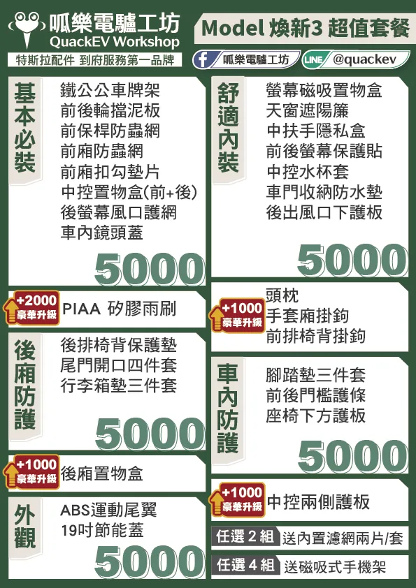 • 服務項目: 特斯拉配件套餐組合(含到店安裝)