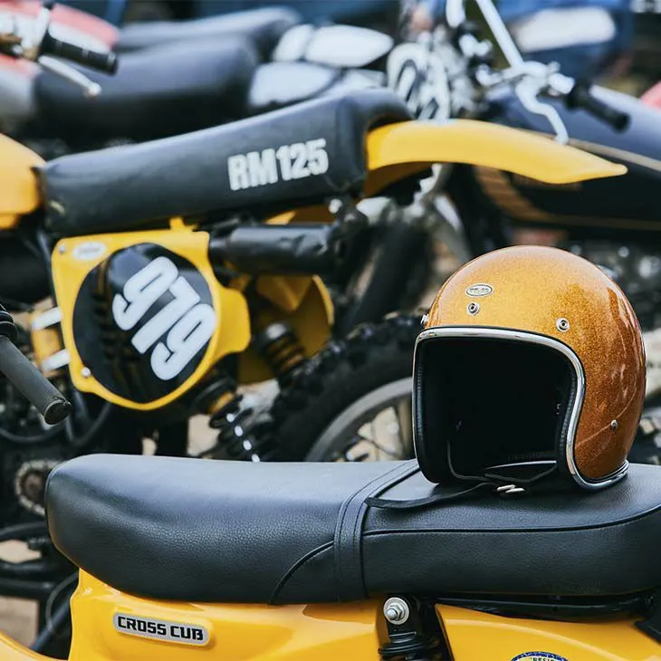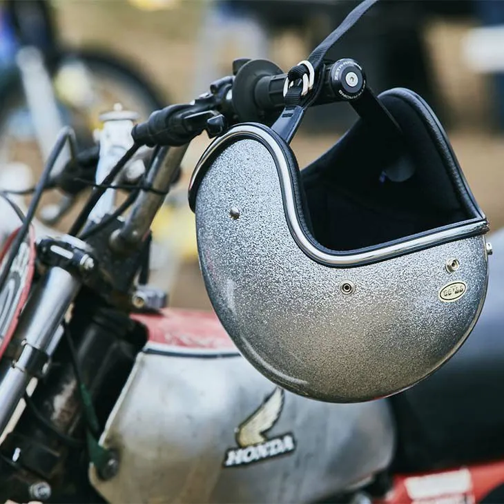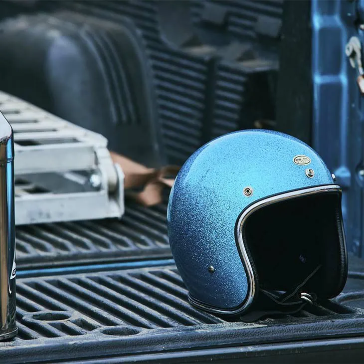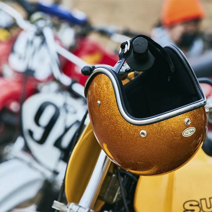 這是一款以1970年代復古安全帽為靈感設計的金蔥(亮粉)造型安全帽。