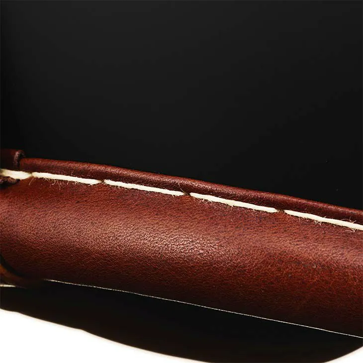使用日本產植物鞣製的全植鞣牛革(本ヌメ),選用油感棕色(オイルドブラウン)皮革。
