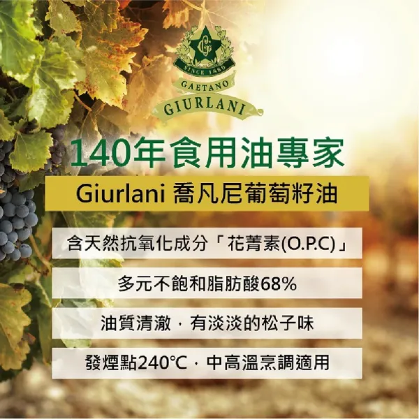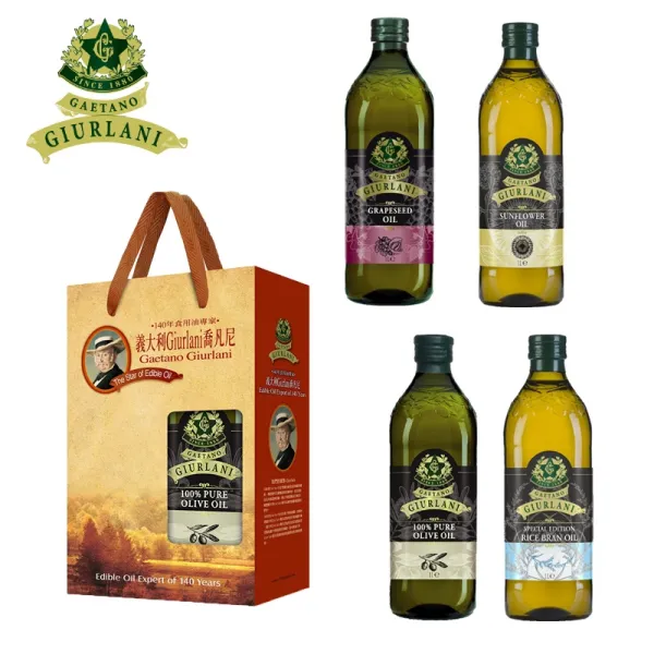 • 義大利Giurlani喬凡尼雙入禮盒 葡萄籽油/純橄欖油/玄米油/葵花油(1L)【中秋禮盒/過年禮盒/年節送禮】