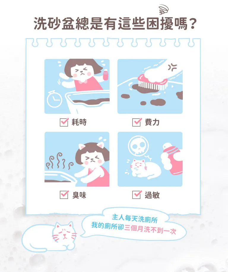 「不只洗砂盆,主人的廁所也能輕鬆洗淨」