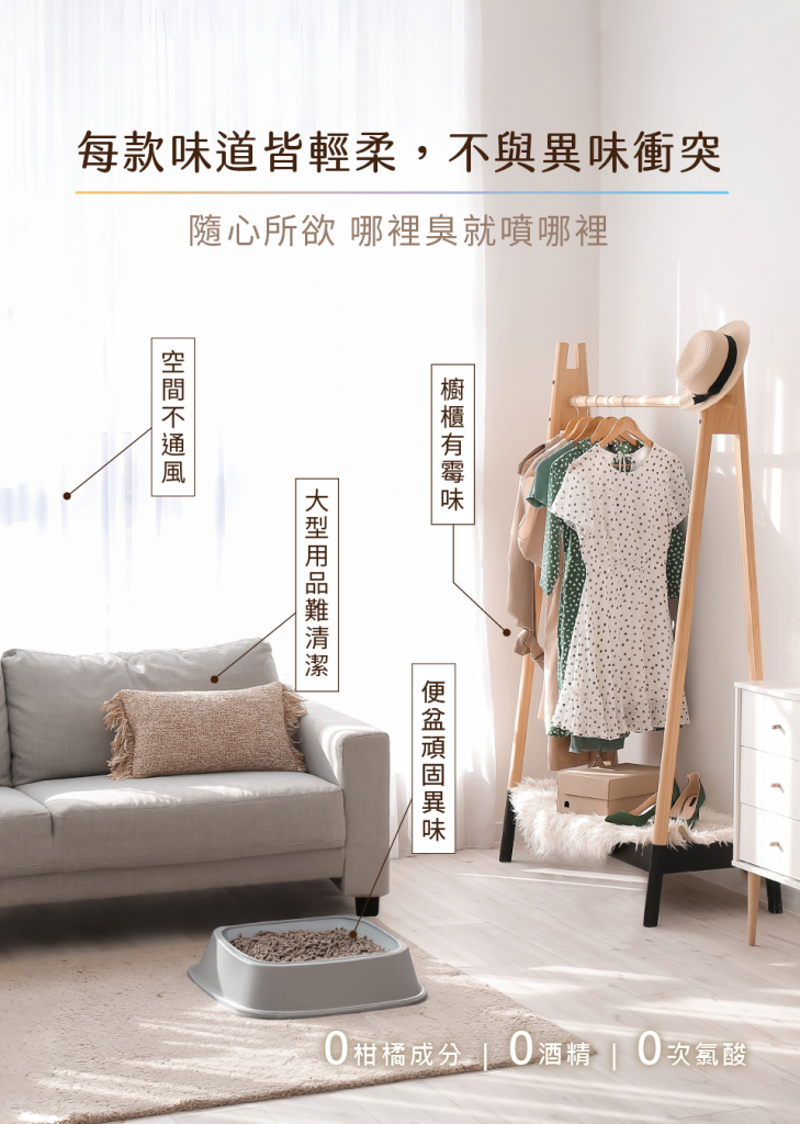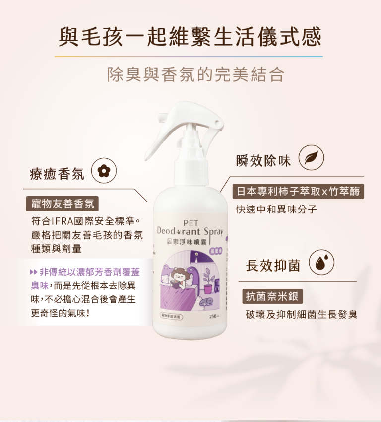 瞬效除臭x長效抑菌x寵物友善香氛,日本專利,三效合一。