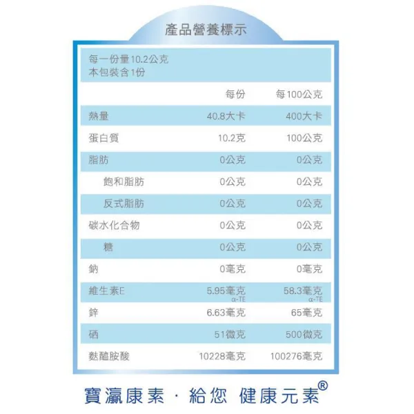 - 有助於維持正常味覺與食慾、抗氧化、促進組織修復