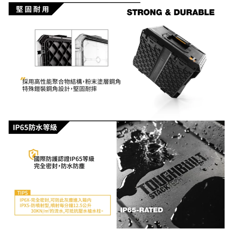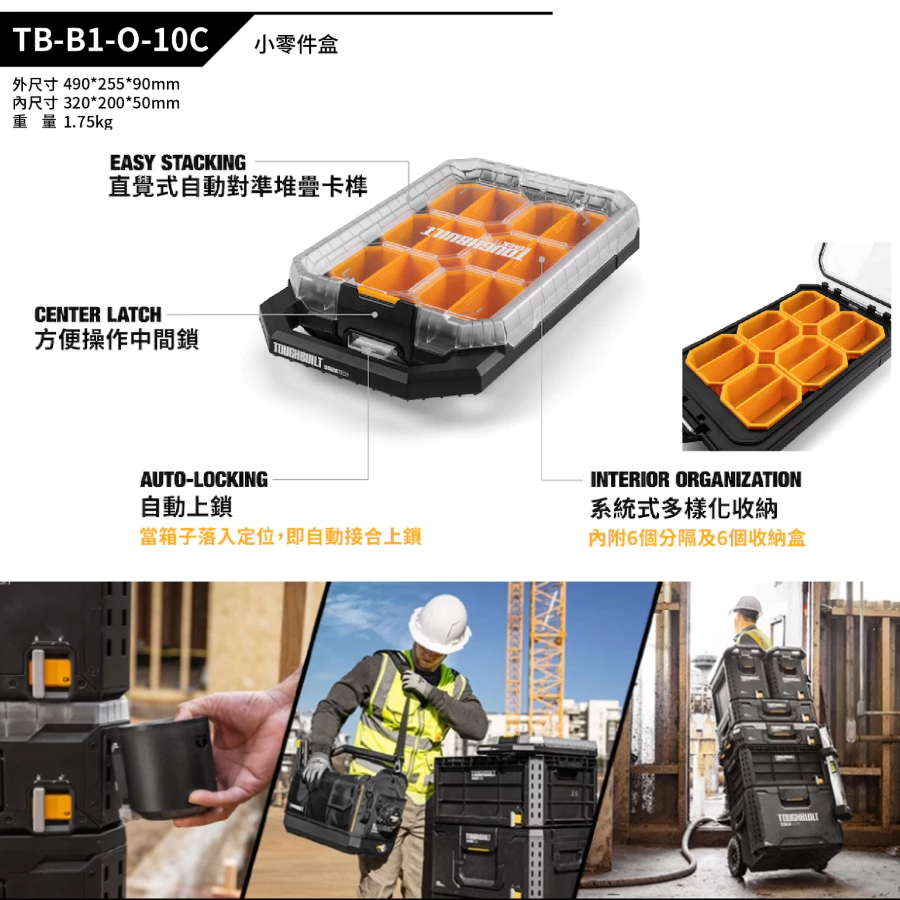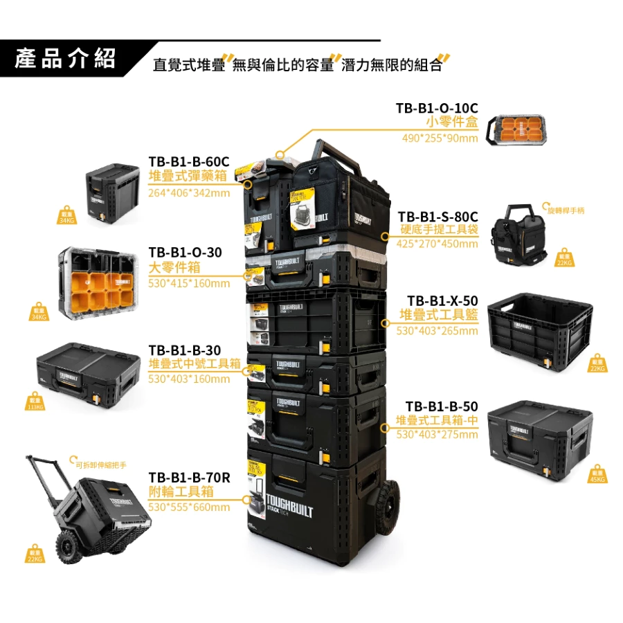 商品TB-B1-B-50 堆疊式工具箱-大 TOUGHBUILT 托比爾 快扣式 工具箱 收納盒 提籃 雙鎖點 防水 堆疊式