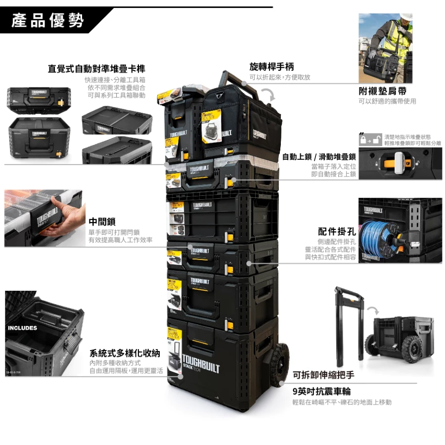 商品TB-B1-T-10 平板⾞ TOUGHBUILT 托比爾 快扣 工具箱 水電 堆疊式 大載重 兩輪固定 置物 烏龜車