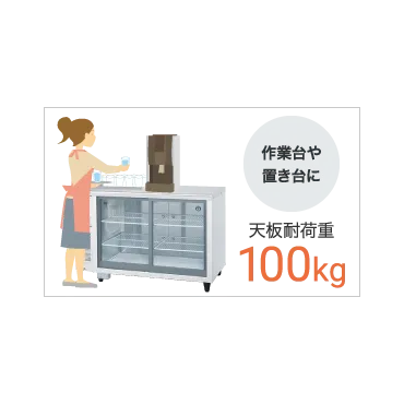 上方檯面可用於簡單備料或擺放小型設備,冷藏飲品、甜點或水果都能隨手取用,提升作業效率。