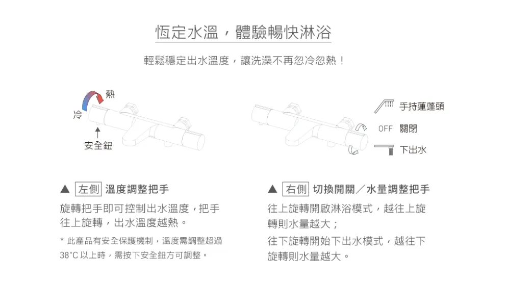 商品OVO 京典 T9101 防燙控溫淋浴花灑組