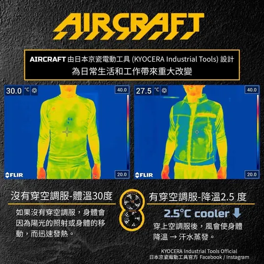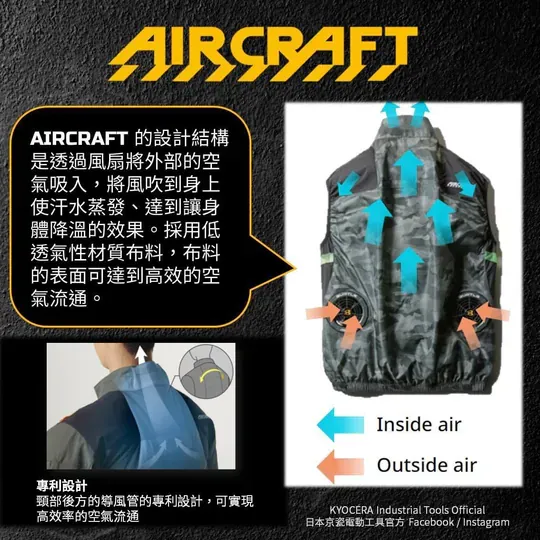 ◆ AIR CRAFT空調服為BURTLE及KYOCERA兩大日本知名品牌聯手推出的產品。