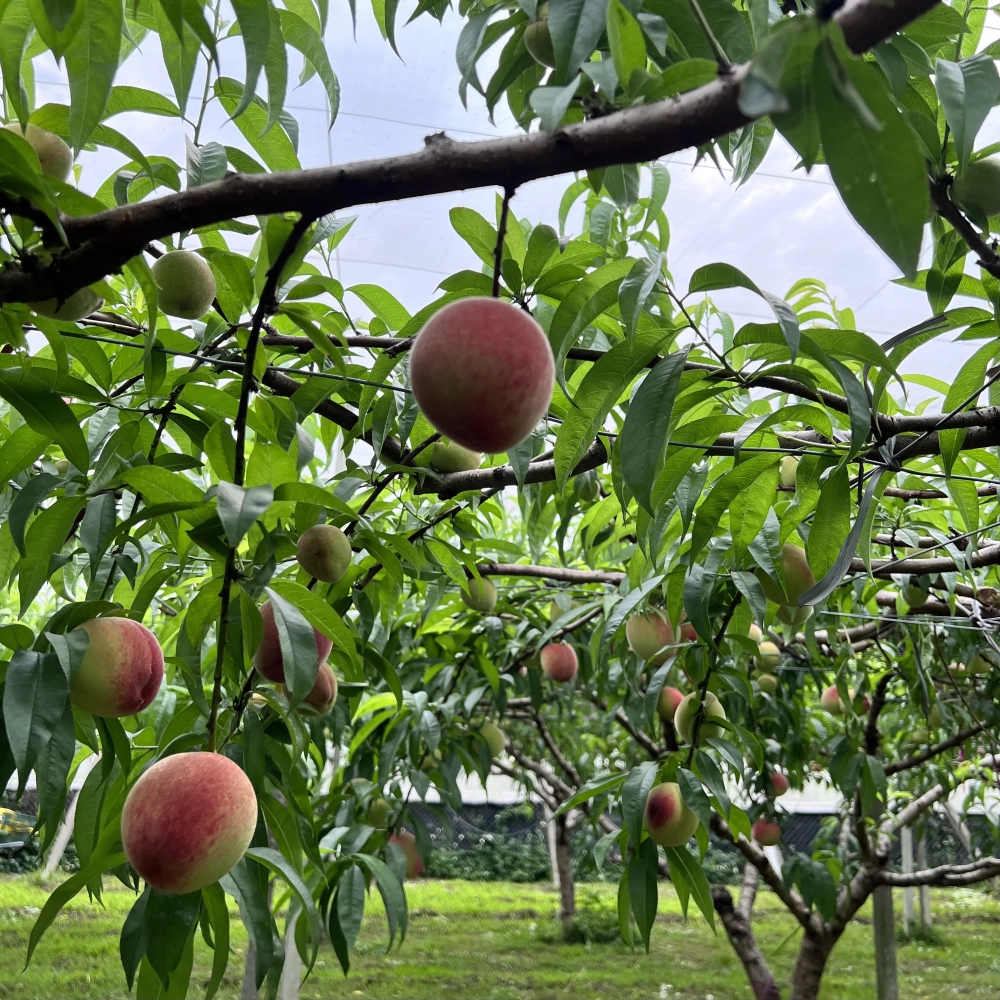 為提升品質,採「一枝一果」的作法,讓養份集中,因此每顆都是精品級水蜜桃,果形大而圓整,色澤粉紅,果香濃郁又多汁,甜度可達12度,品質不輸高山水蜜桃。