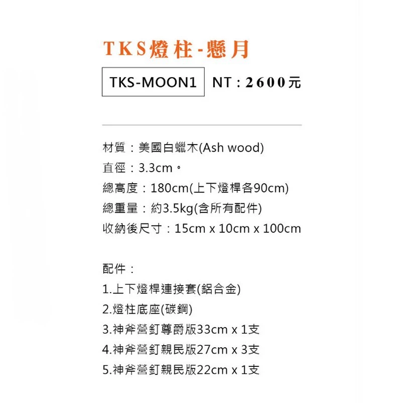 配件含5支營釘及底座