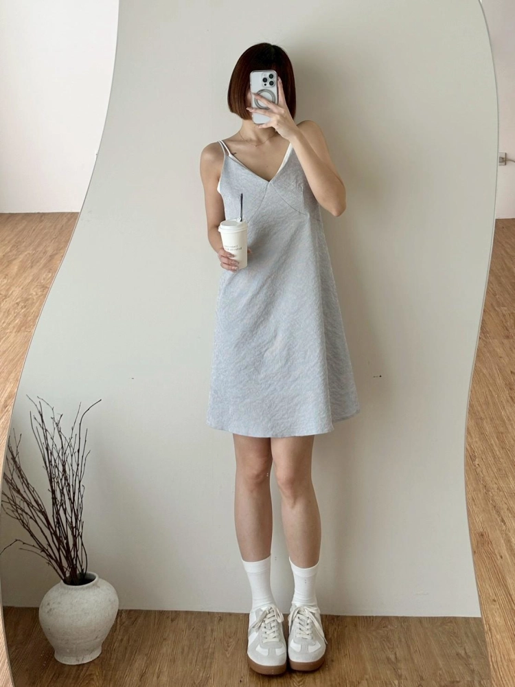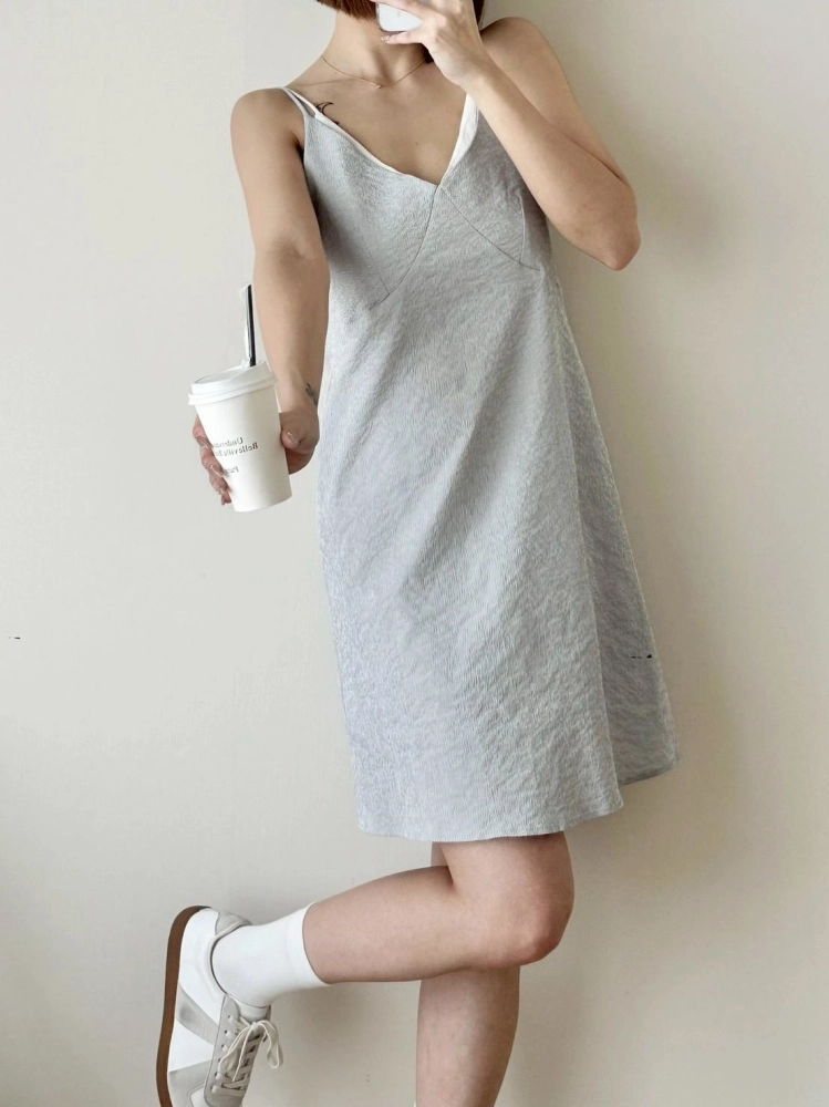 • 假兩件短洋裝