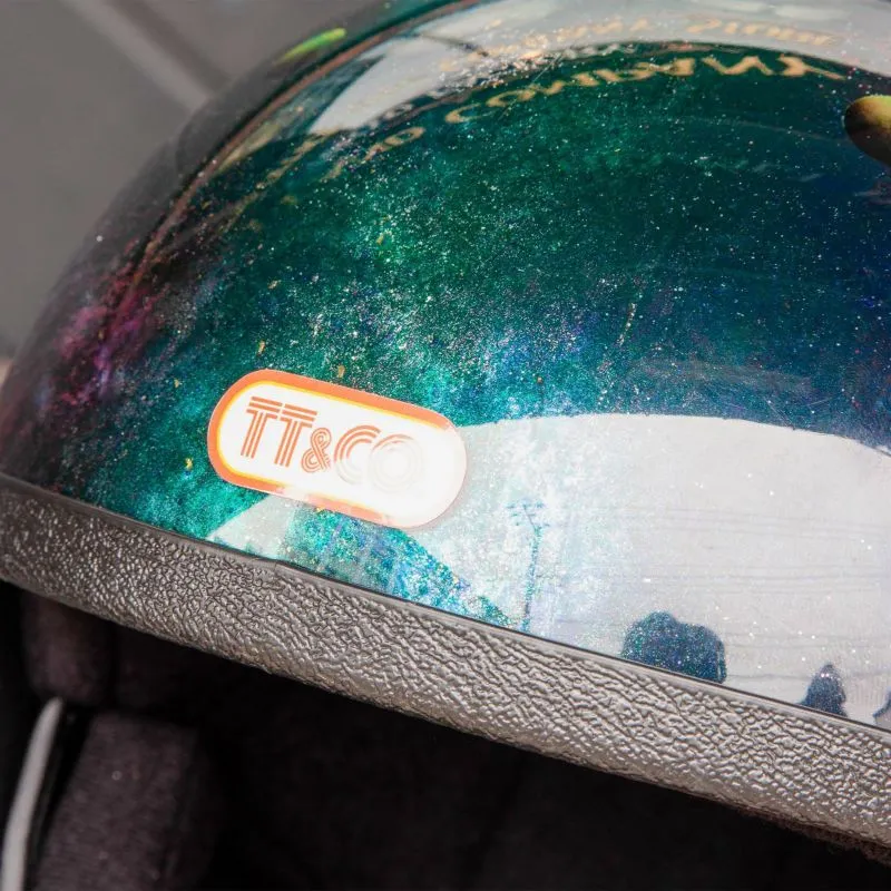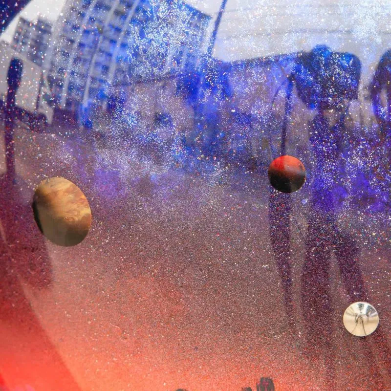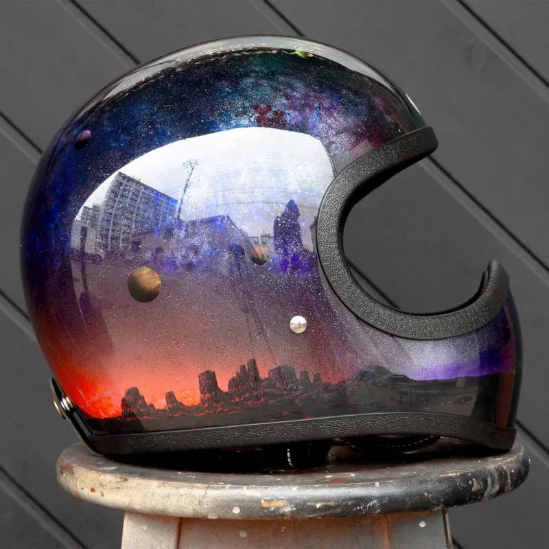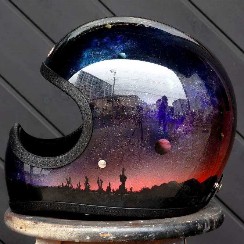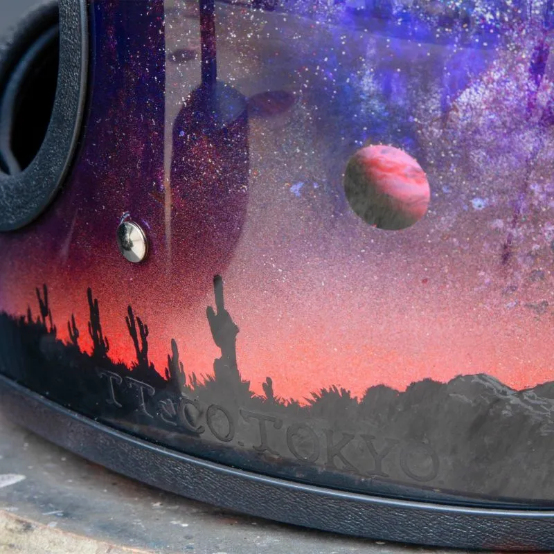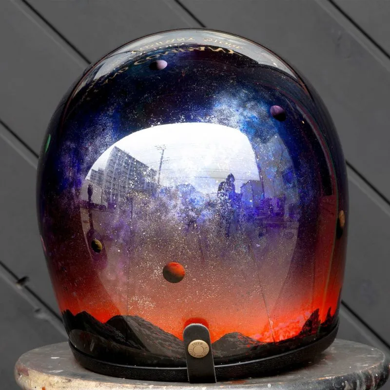 在聚碳酸酯材質的透明外殼內側,反覆疊加多層塗料與噴筆彩繪,細膩描繪自然與宇宙的意象。