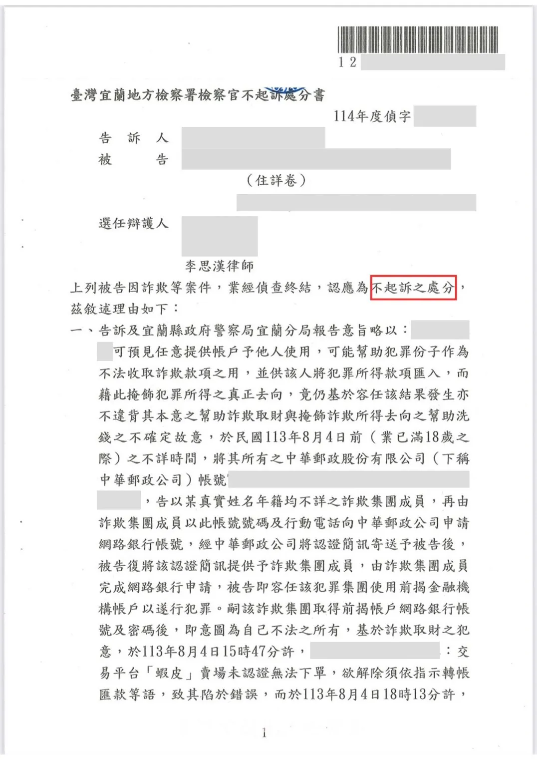 • 剛滿18歲遇網購詐騙陷阱,誤用帳戶遭控詐欺,最終獲「不起訴處分」