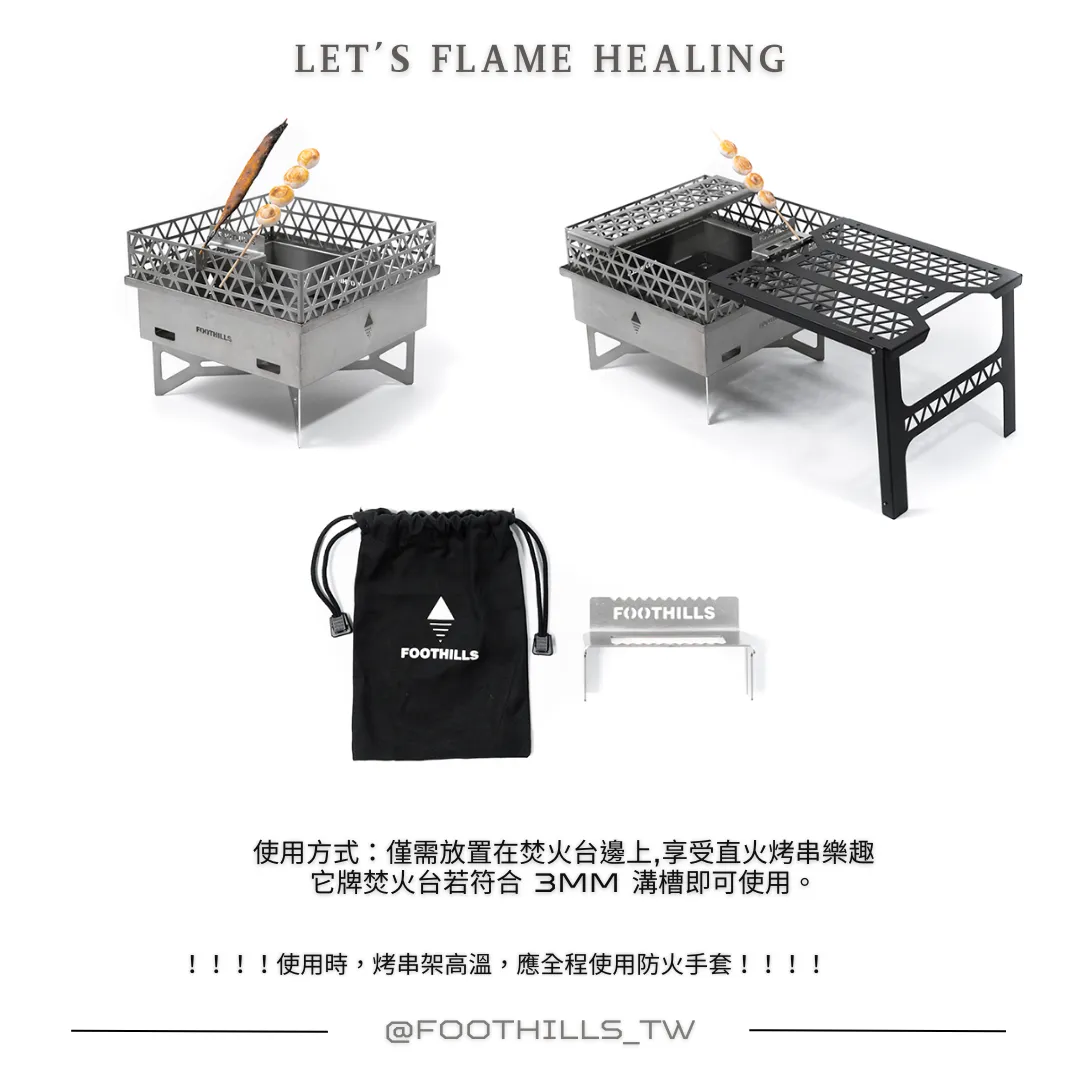✓ 適用其他可架烤串架之焚火台