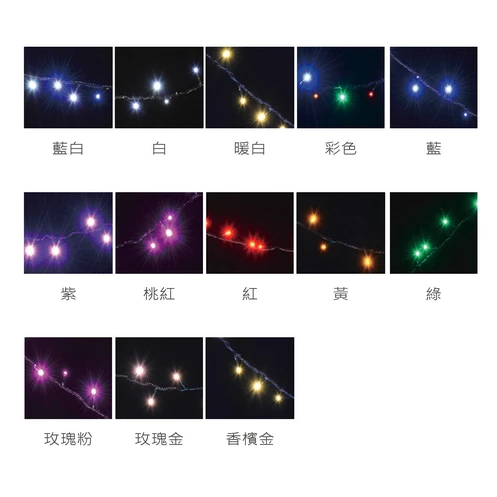紅色、黃色、綠色、藍色、紫色、桃紅色、彩色、藍白色、白色、暖白色、玫瑰粉、玫瑰金、香檳金
