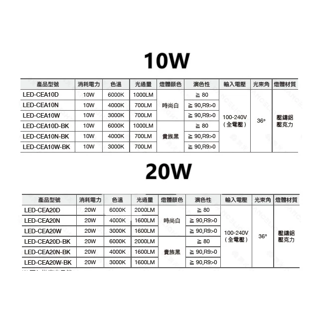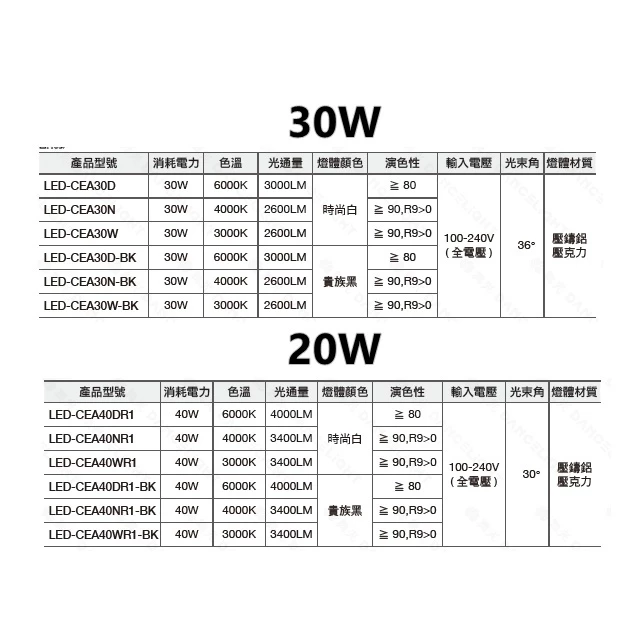 ⭐ 燈體材質 : 壓鑄鋁+壓克力
