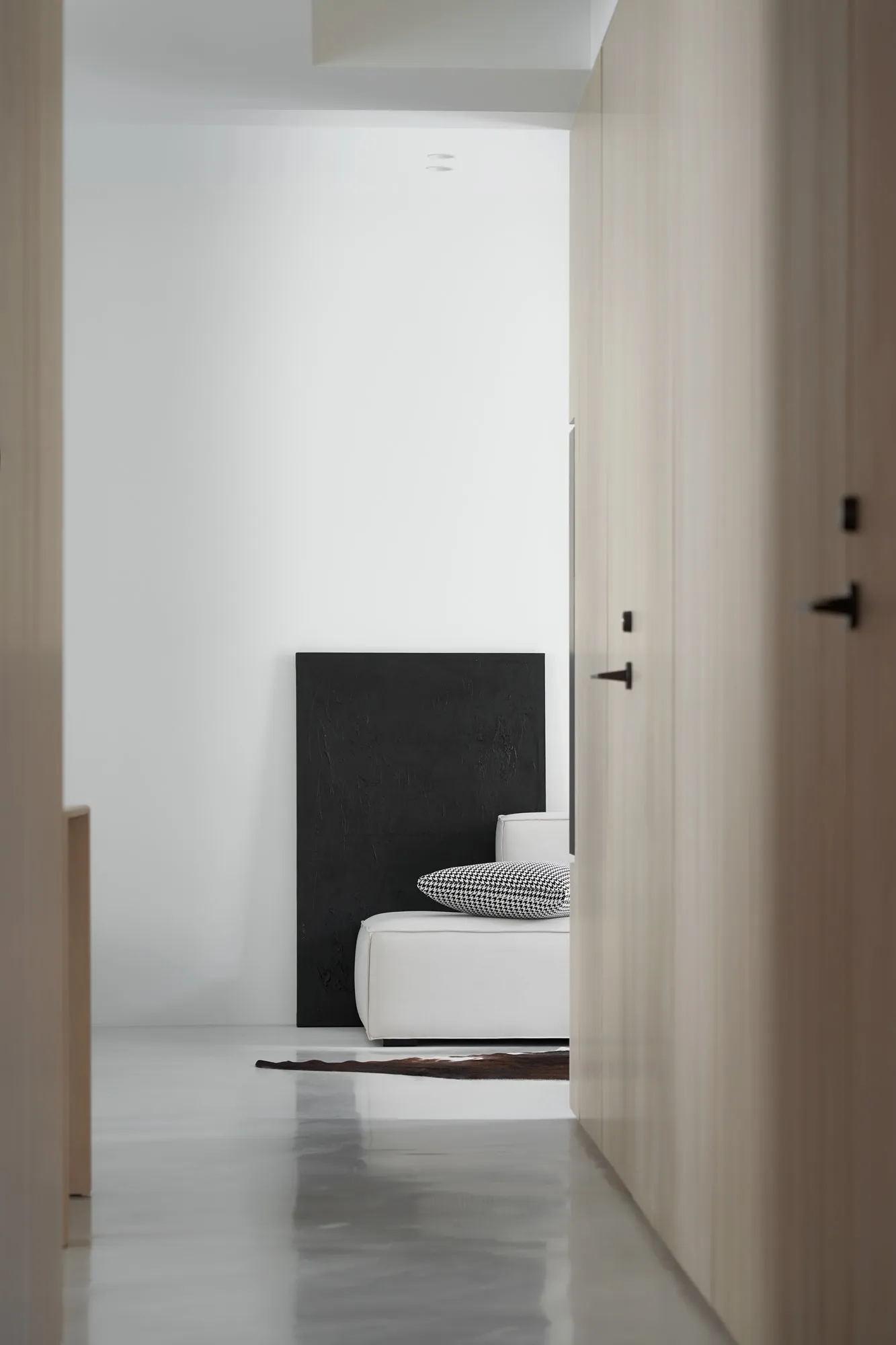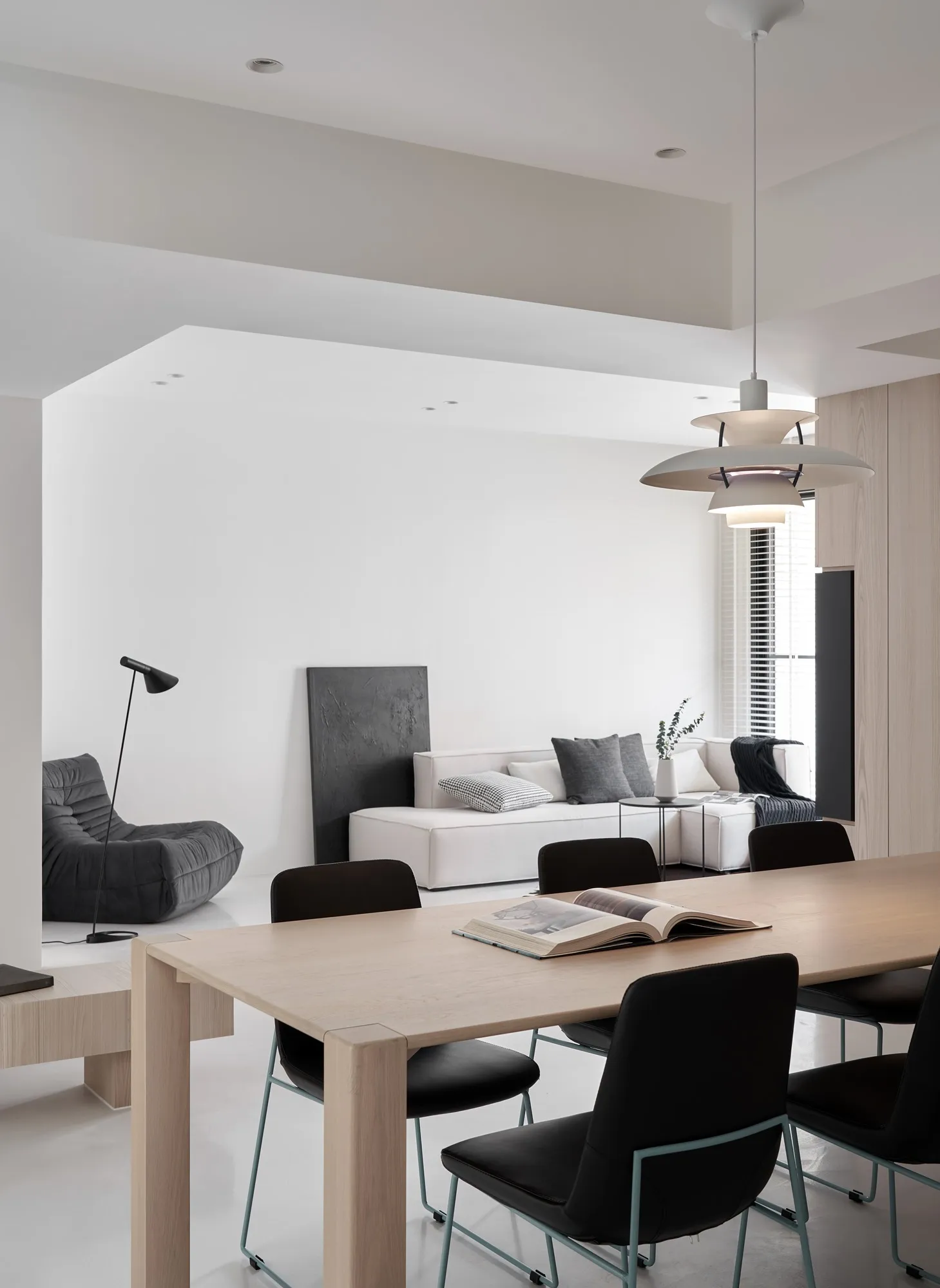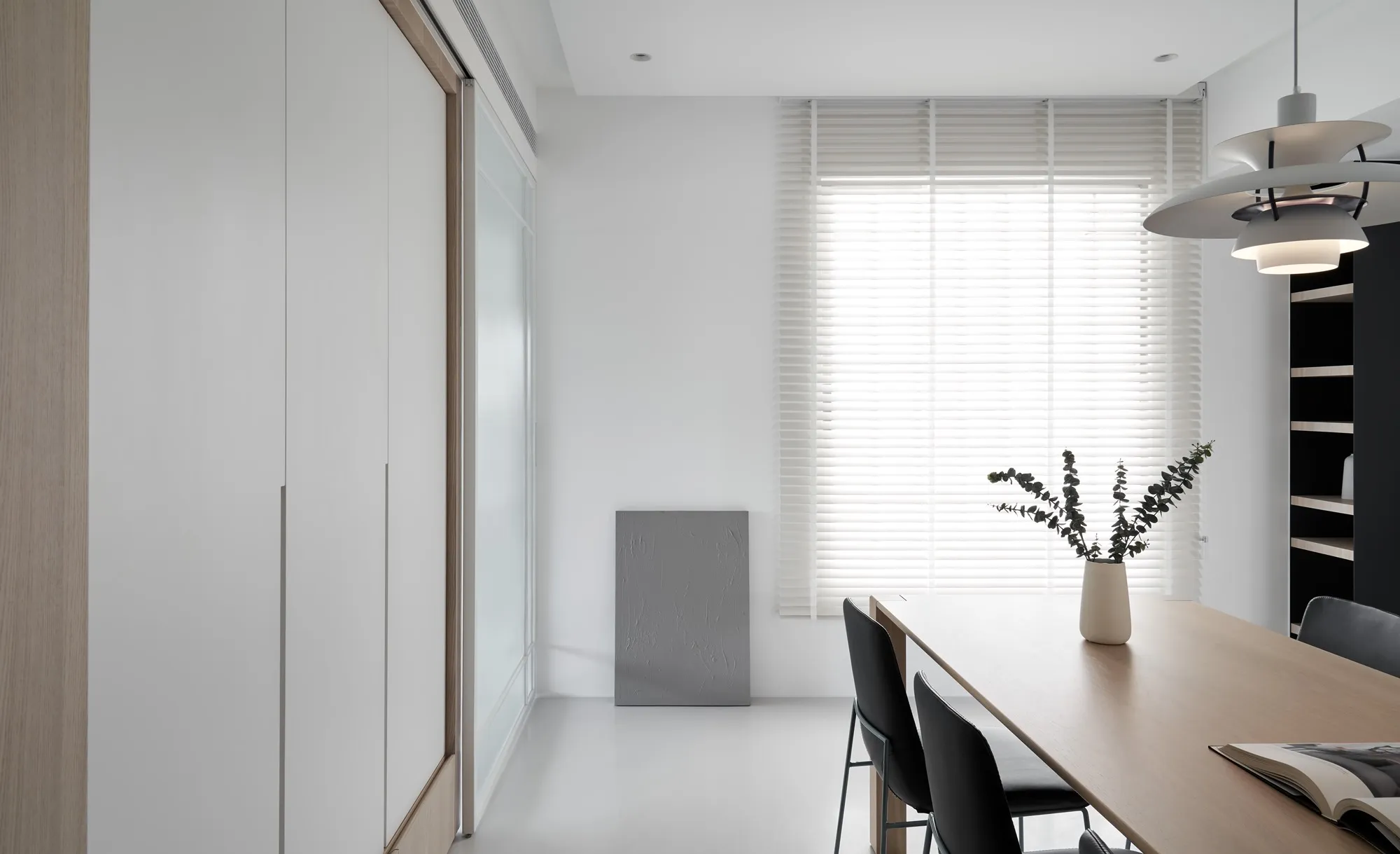 The designer for this project has combined the proprietor’s understanding towards simple ecological aesthetics and lifestyle, using straightforward but exquisite design techniques to the overall cozy and tranquil effect. Upon entering the lounge, one is welcomed by sufficient sunlight and warm temperament, where the cream white seamless flooring quietly complements each corner in the house, while a light grey sofa placed by the window with black velvet chair enriched the visual layers. The television wall utilized a large area of warm wooden colors to go with the black iron, perfectly interpreting the ingenious design of sturdiness within softness, while the overall color tone is comfortable, peaceful with a majestic manner. The glass brick windows the best lighting and ambience for the restaurant, while the dark black colored dining chairs and simple wood-tone dining tables correspond mutually with the lounge design, allowing the overall quality with an ultimate presentation. The paralleled kitchen style has adopted a massive amount of wooden texture to a warm sentiment, the simpler the elements, the more comfortable and durable charm they offer; the end of the kitchen shows a massive amount of natural lighting, which is the most luxurious decoration. The style adopted in the bedroom is constant with the lounge, but it is purposed as a private space for resting, hence it has to have the characteristics of quietness and coziness. For the design, we eliminated exaggerated decorations, and replaced with mild color tones to a tranquil and dignified feeling. When the sunlight gently shines into the bedroom, a space filled with tranquility and harmony is created. “ Regression” perfectly interprets how people find their exclusive tranquility at home after fatigued by a busy day, where they regress to their most original personality and innate character. The overall simple modern style makes people feel free and comfortable, whereas the massive amount of original wood with dignified and elegant color tones, the well-executed lines, the distinctive layout and the strong structurability result in the self-evident natural spatial quality.