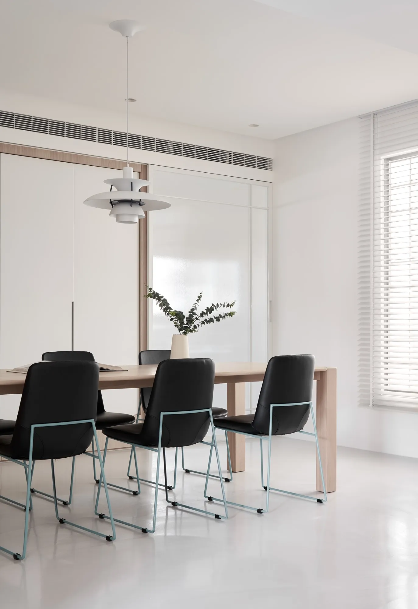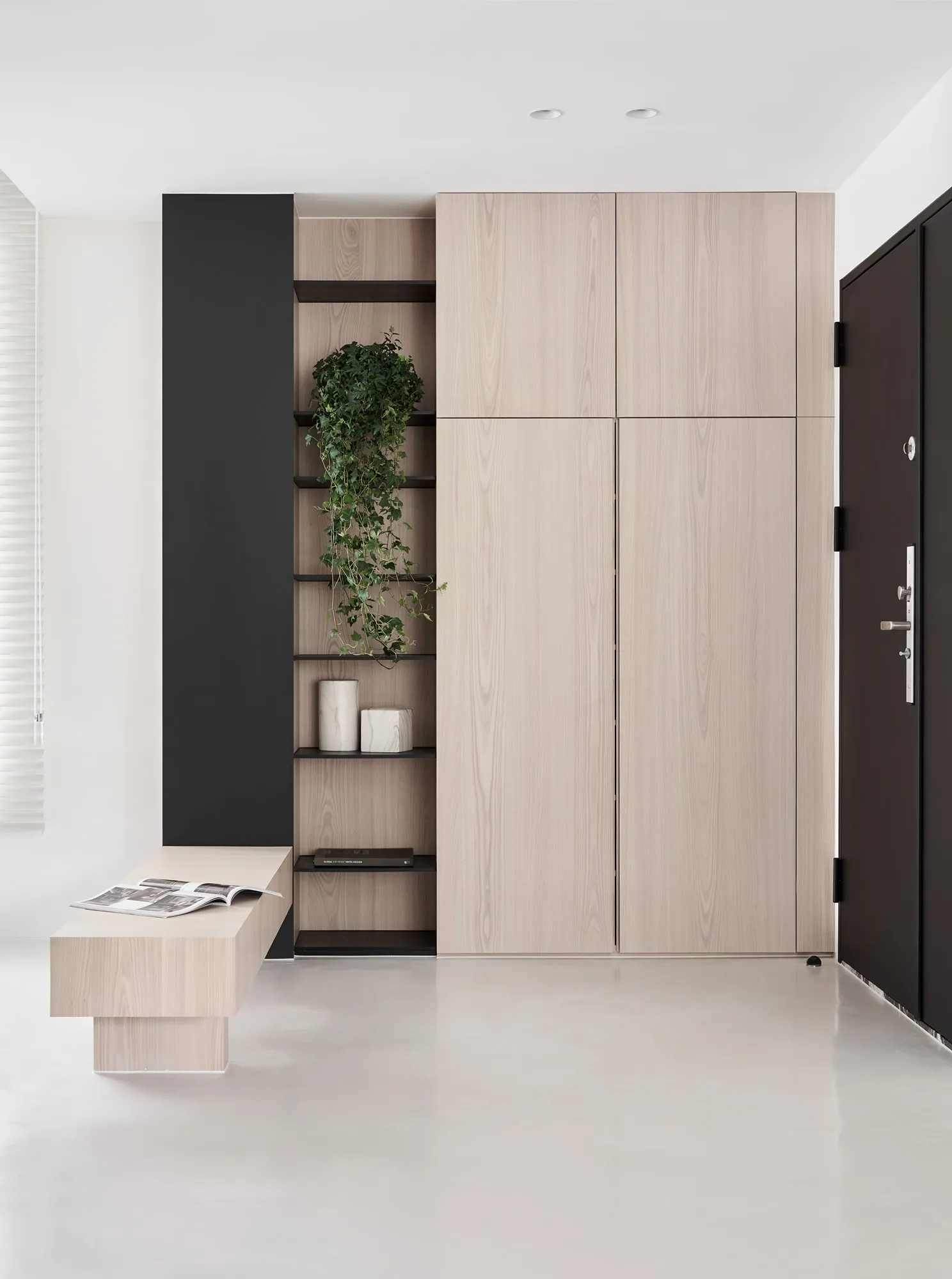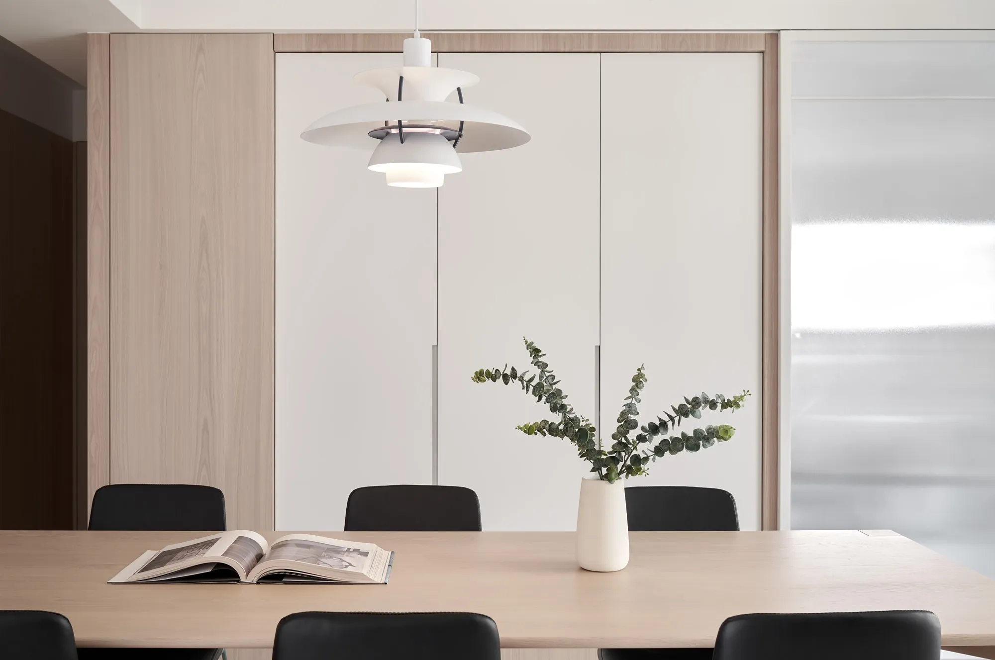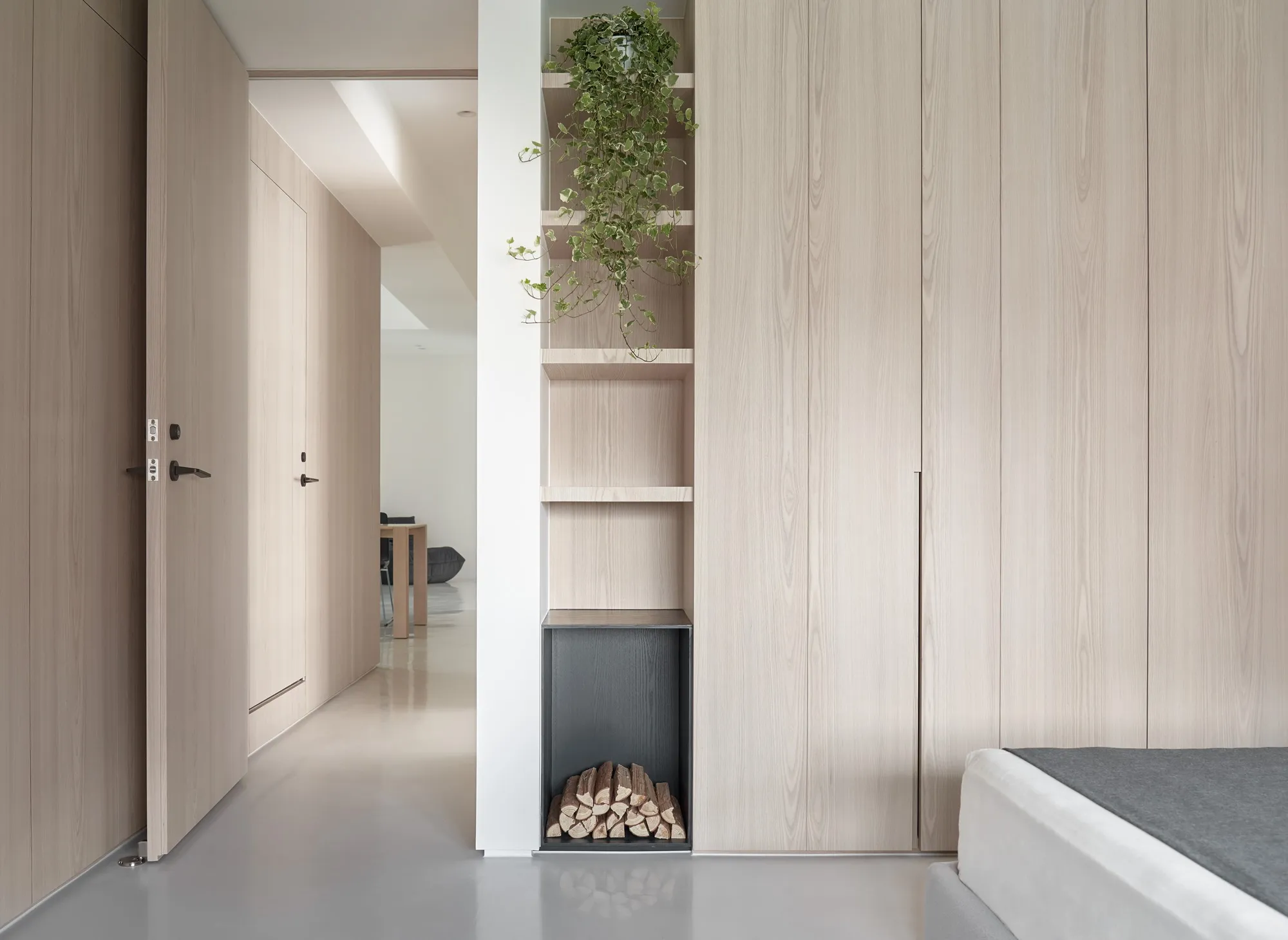 The designer for this project has combined the proprietor’s understanding towards simple ecological aesthetics and lifestyle, using straightforward but exquisite design techniques to the overall cozy and tranquil effect. Upon entering the lounge, one is welcomed by sufficient sunlight and warm temperament, where the cream white seamless flooring quietly complements each corner in the house, while a light grey sofa placed by the window with black velvet chair enriched the visual layers. The television wall utilized a large area of warm wooden colors to go with the black iron, perfectly interpreting the ingenious design of sturdiness within softness, while the overall color tone is comfortable, peaceful with a majestic manner. The glass brick windows the best lighting and ambience for the restaurant, while the dark black colored dining chairs and simple wood-tone dining tables correspond mutually with the lounge design, allowing the overall quality with an ultimate presentation. The paralleled kitchen style has adopted a massive amount of wooden texture to a warm sentiment, the simpler the elements, the more comfortable and durable charm they offer; the end of the kitchen shows a massive amount of natural lighting, which is the most luxurious decoration. The style adopted in the bedroom is constant with the lounge, but it is purposed as a private space for resting, hence it has to have the characteristics of quietness and coziness. For the design, we eliminated exaggerated decorations, and replaced with mild color tones to a tranquil and dignified feeling. When the sunlight gently shines into the bedroom, a space filled with tranquility and harmony is created. “ Regression” perfectly interprets how people find their exclusive tranquility at home after fatigued by a busy day, where they regress to their most original personality and innate character. The overall simple modern style makes people feel free and comfortable, whereas the massive amount of original wood with dignified and elegant color tones, the well-executed lines, the distinctive layout and the strong structurability result in the self-evident natural spatial quality.