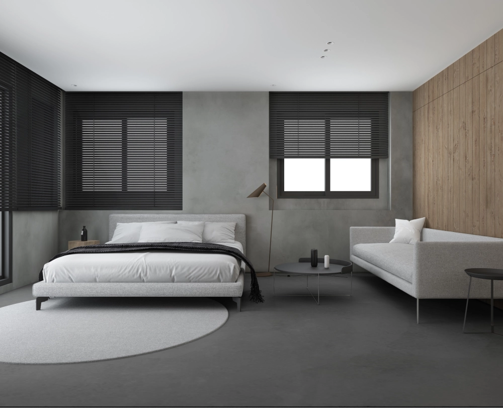 This space is grounded in a balanced palette of muted greys, offering a sense of calm and unspoken clarity. Warm wood tones weave through the composition, softening the coolness and bringing a quiet harmony that embodies a contemporary interpretation of wabi-sabi aesthetics. Black metal accents define the architecture with crisp lines, while the interplay of layered greys enhances the spatial depth. Touches of soft white filter in like natural light, introducing a subtle rhythm that uplifts without overwhelming. By eliminating ornamental excess, the design allows the beauty of the everyday to surface—simple, authentic, and enduring. After all, the essence of “peaceful years” lies not in grandeur, but in the understated poetry of daily life.