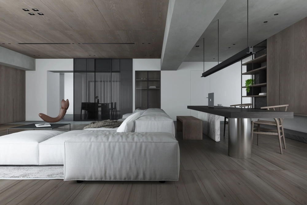 深而不重的木,圍塑了紳士且穩重的氛圍;靜而不濁的灰,疊敘了生活的動線及細節;純而不雜的白,成為光線延展最好的介質。 The deep but not heavy wood creates a gentlemanly and stable atmosphere;Quiet but not turbid gray, repeating the moving lines and details of life;Pure and unadulterated white becomes the best medium for light extension. CITY: YEAR: SIZE:m2
