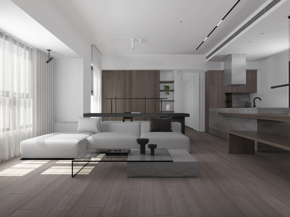 木質紋理的細膩與沉穩,流淌於整室,柔美的光線透過白紗灑進,散落在開放式公領域,帶來溫潤的暖意,讓推開家門的你釋放緊繃的思緒。Less is more,不框住你對生活的想像。