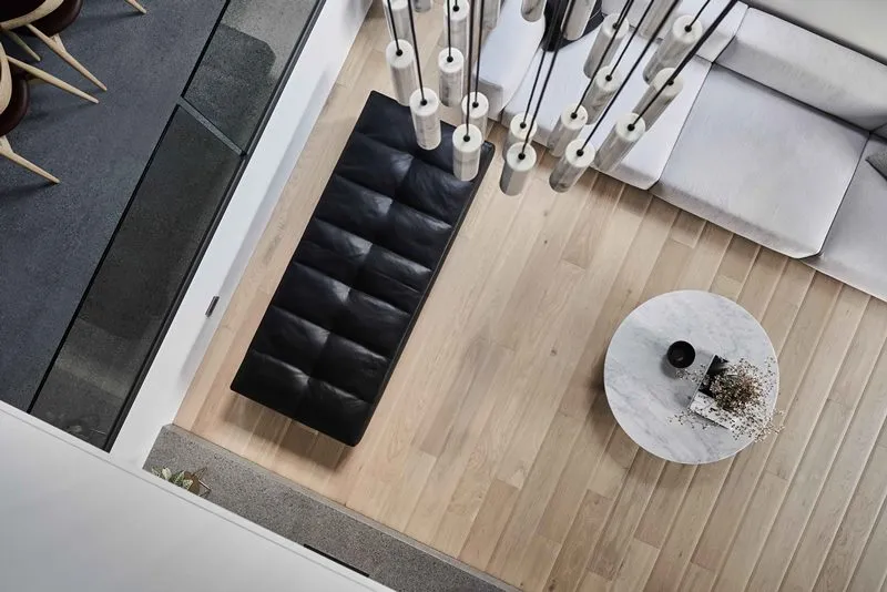 On the first floor, the height difference and flowing design of the dining and living areas break the plane restrictions, redefine the behavior of the flow space, blend the volumes, interweave the space, and combine with different materials and light and shadow changes to outline different spatial forms while expanding the line of sight and dividing the areas.