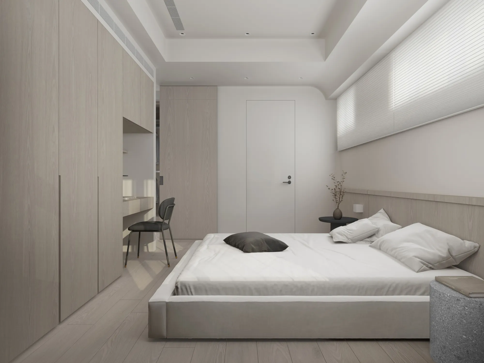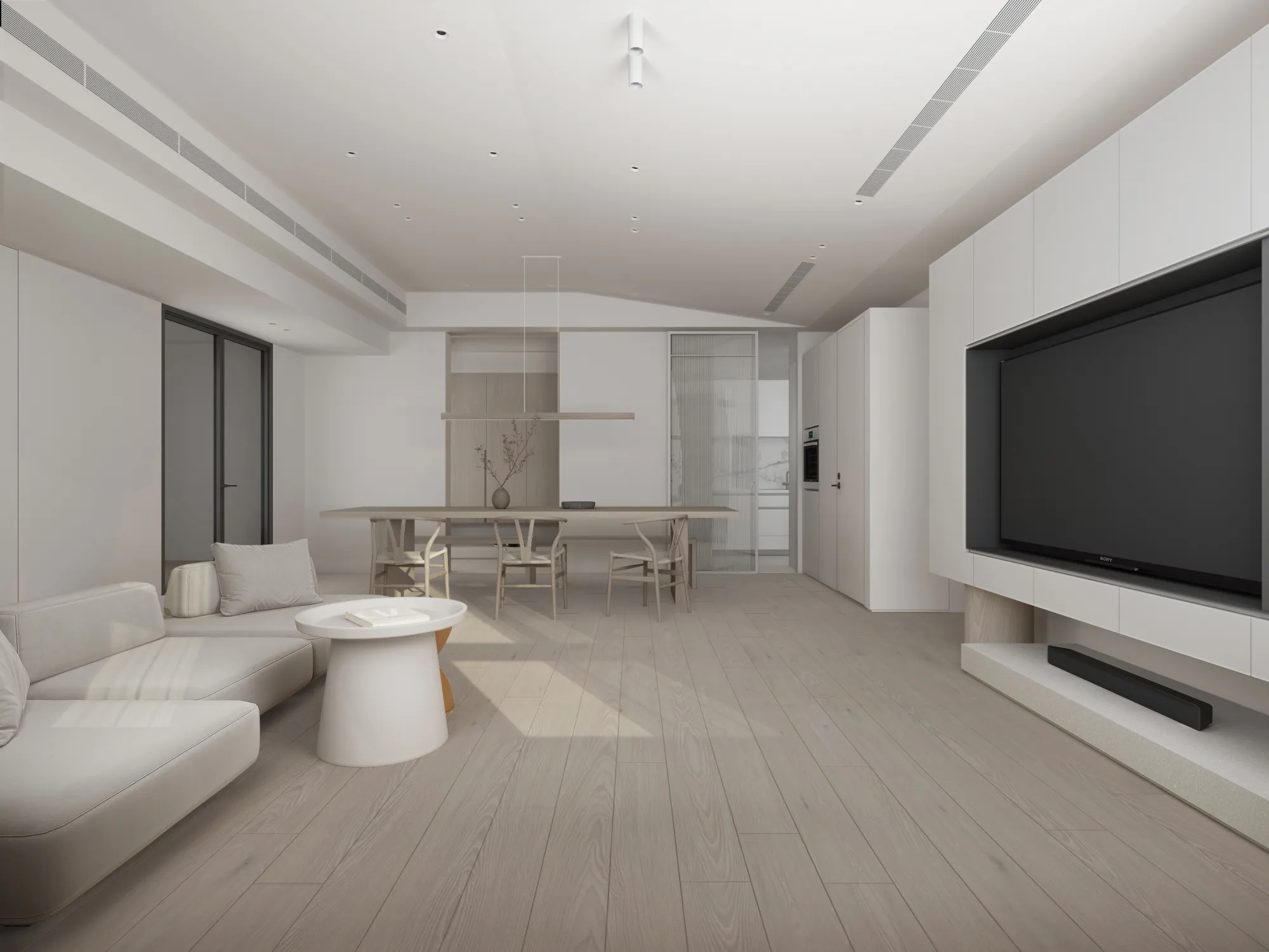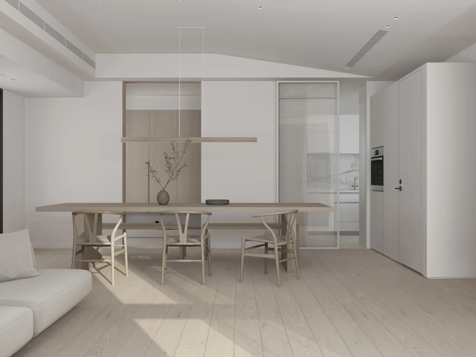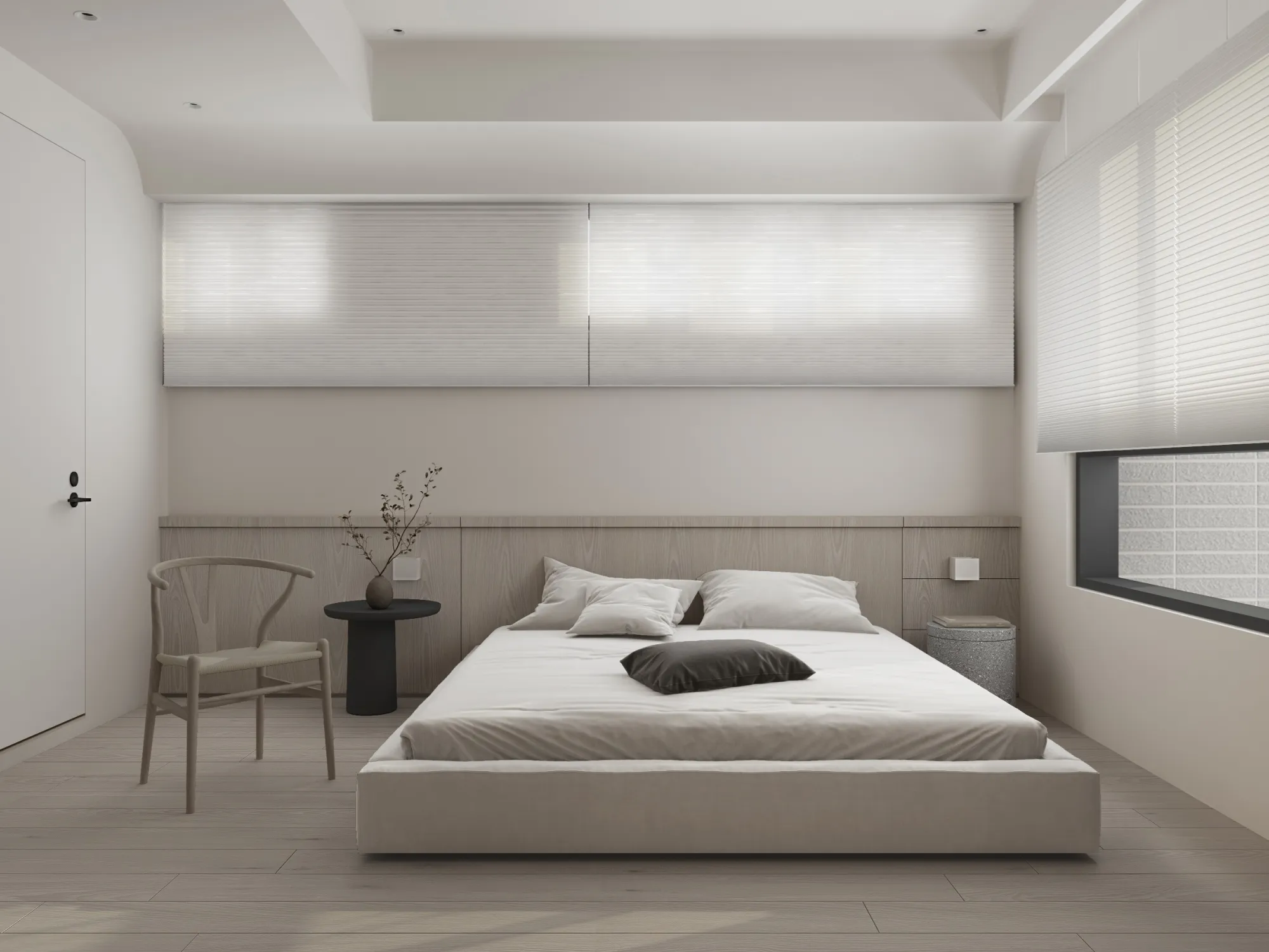 Milky white injects purity and brightness into the space, providing an ethereal background, and warm wood tones different style effects. White has the characteristics of high brightness and low saturation. It can reflect most of the light, making the space appear brighter and more spacious. It can also reduce the temperature of the space and a light and harmonious atmosphere.The circular arches connect different areas together, weakening the sharp right angles of the original space, allowing residents to feel the continuity and fluidity of the space.Light is a painter. Every time the sunlight enters the window, it becomes the beginning of a painting, injecting visual poetry into the space. Through the changes of light and shadow, it gives each space a unique soul.Just as colors have their own symbolic meanings, geometric shapes also have unique personalities. Each item carries a story about the past and the future, each occupying the most appropriate position and becoming an important element in the composition of the space.May the gifts of good times be slowly paved under the sun into a path of light and shadow flowing with happiness.