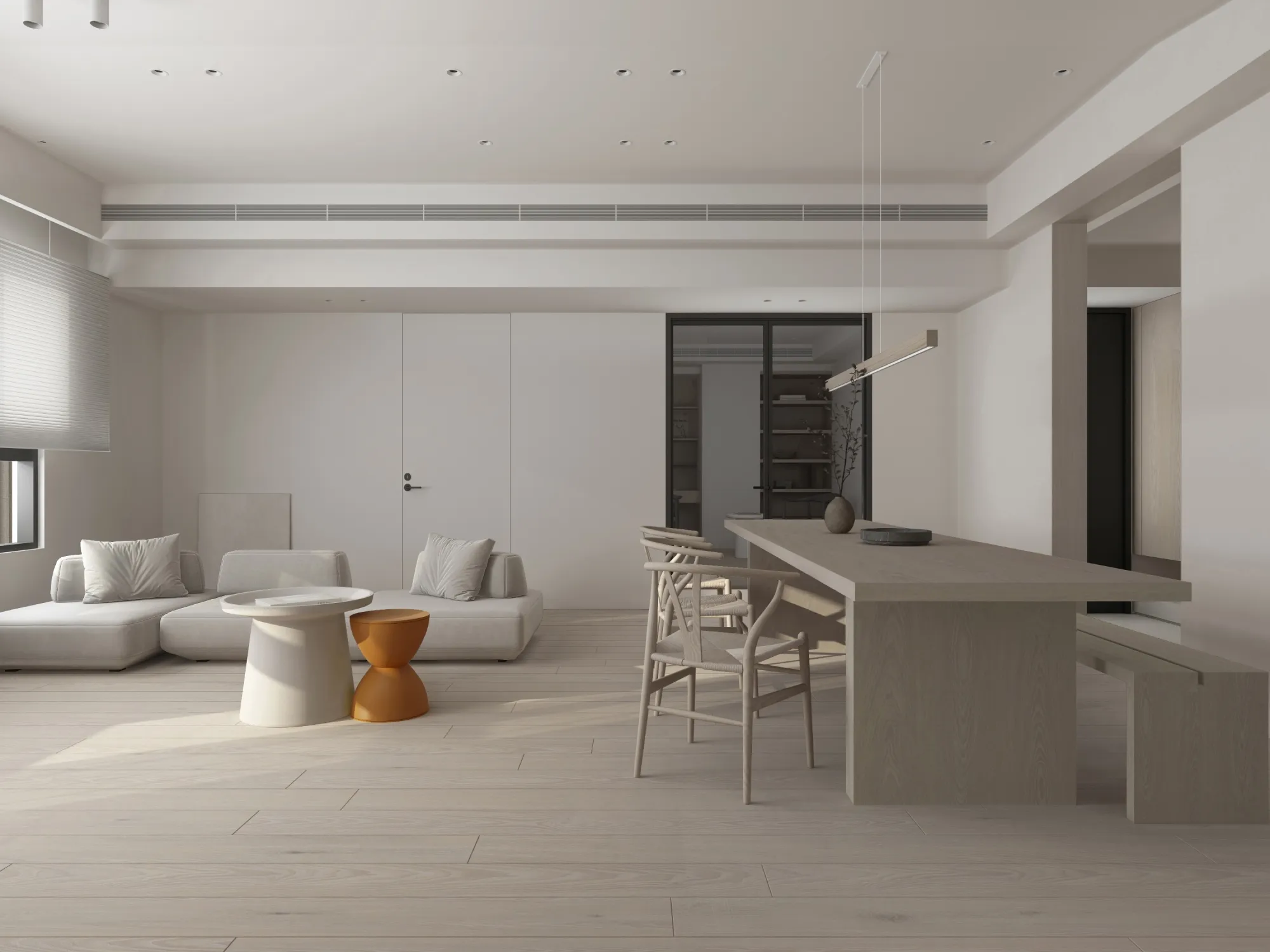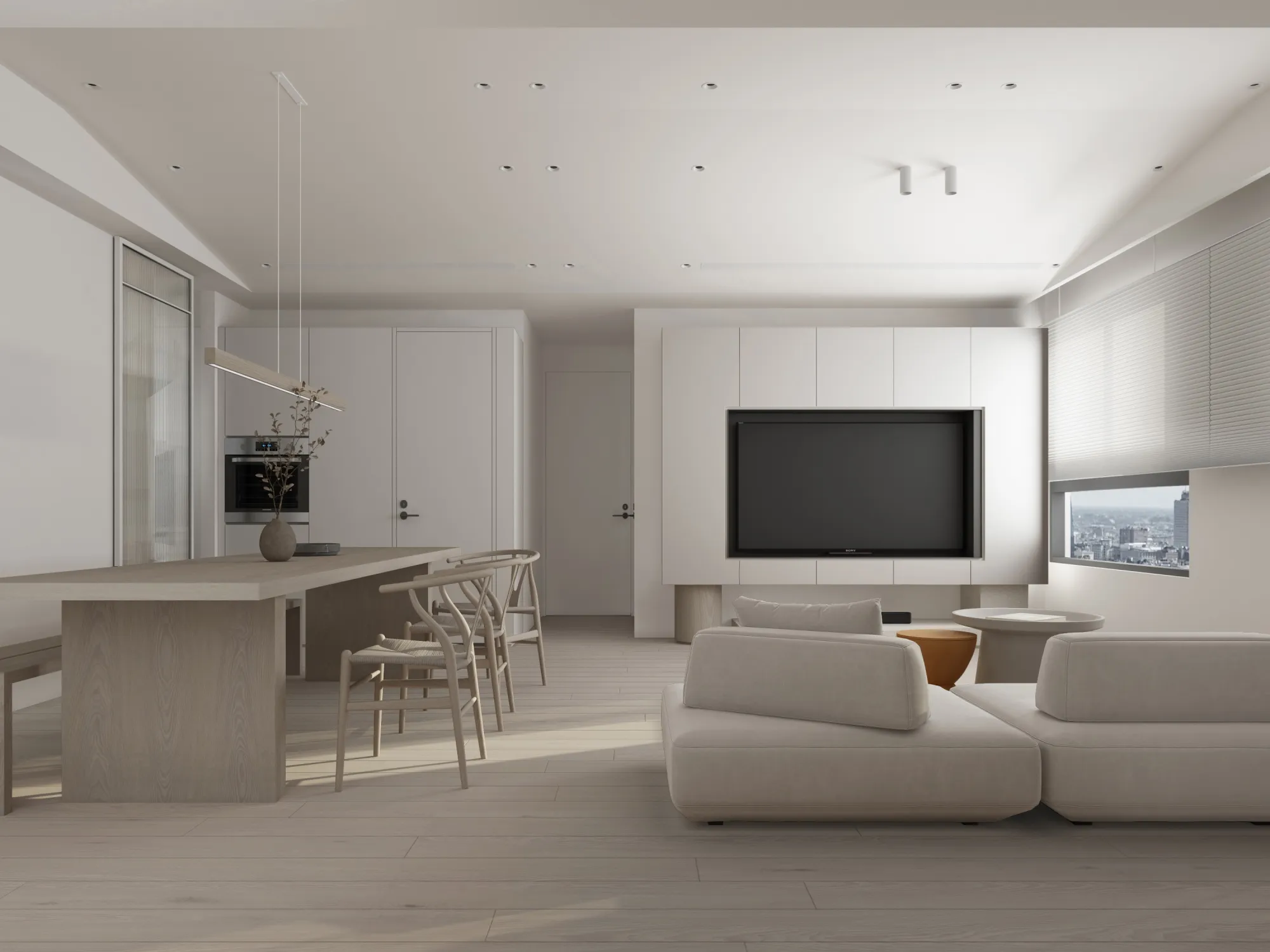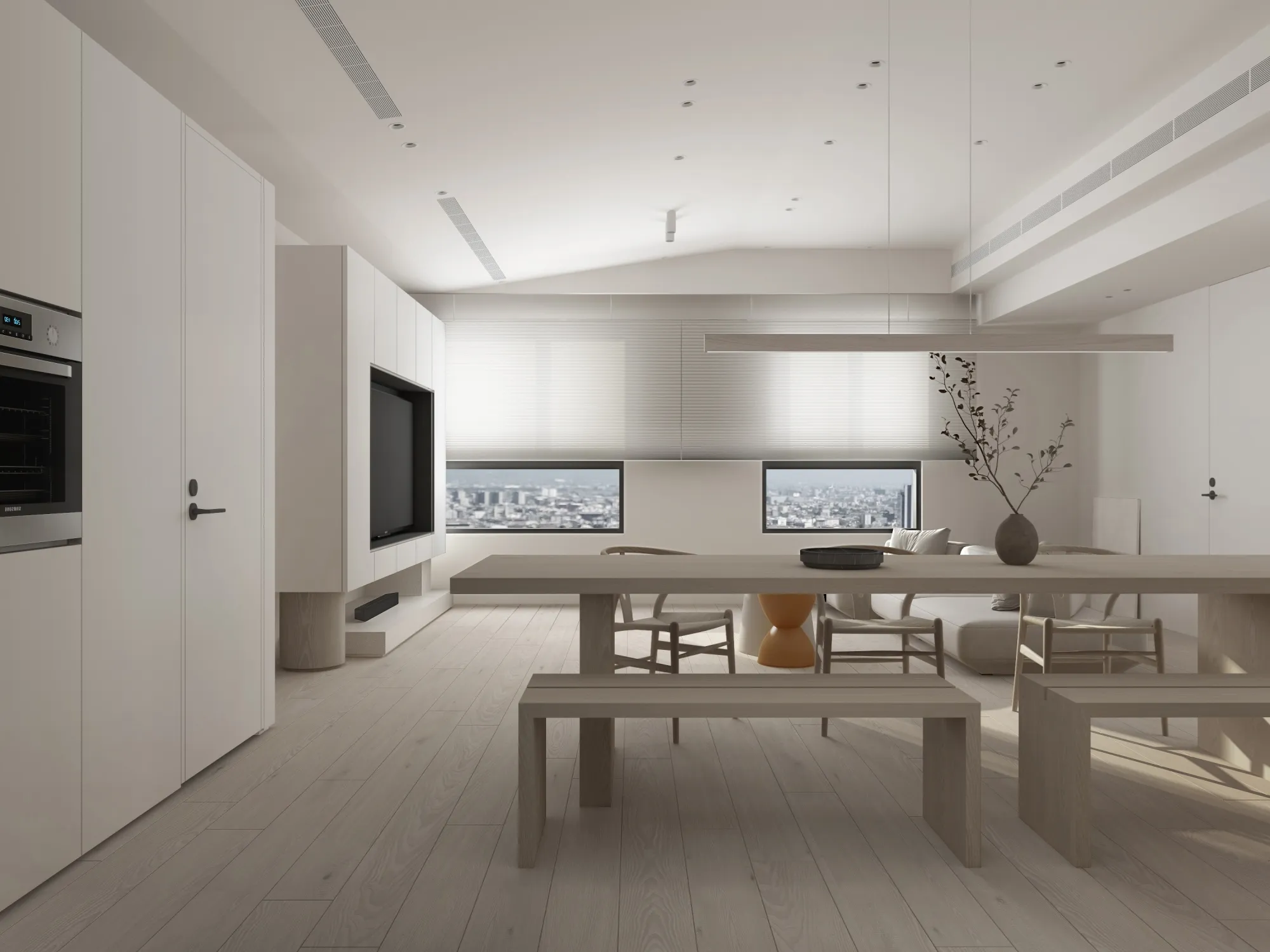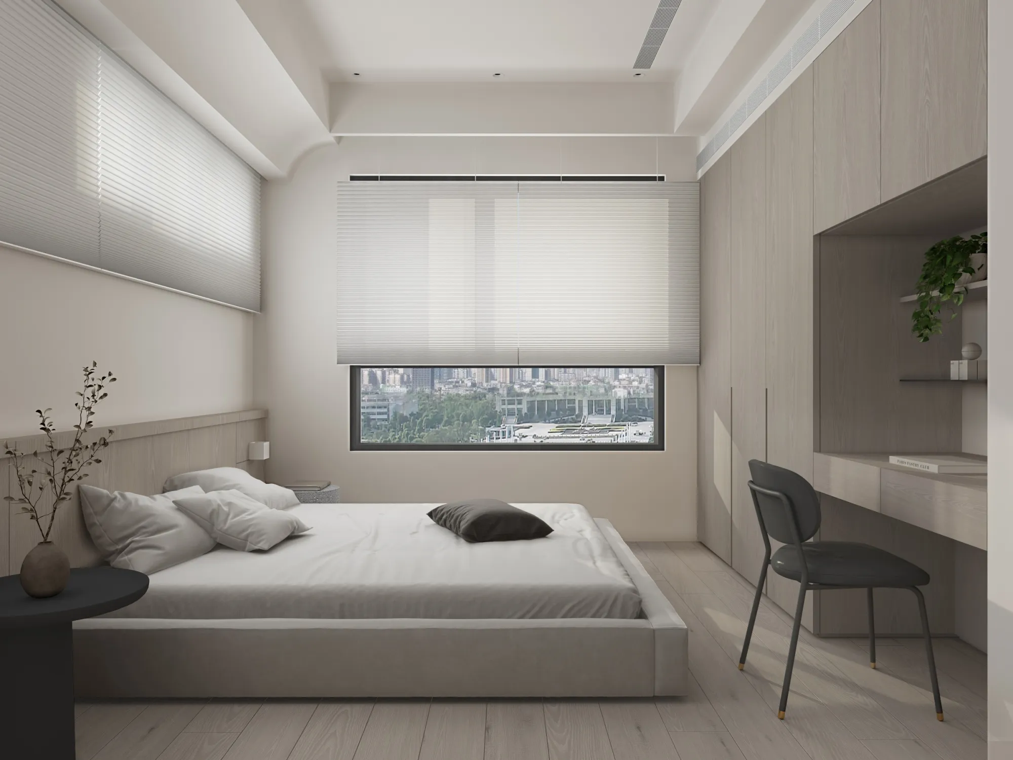 Milky white injects purity and brightness into the space, providing an ethereal background, and warm wood tones different style effects. White has the characteristics of high brightness and low saturation. It can reflect most of the light, making the space appear brighter and more spacious. It can also reduce the temperature of the space and a light and harmonious atmosphere.The circular arches connect different areas together, weakening the sharp right angles of the original space, allowing residents to feel the continuity and fluidity of the space.Light is a painter. Every time the sunlight enters the window, it becomes the beginning of a painting, injecting visual poetry into the space. Through the changes of light and shadow, it gives each space a unique soul.Just as colors have their own symbolic meanings, geometric shapes also have unique personalities. Each item carries a story about the past and the future, each occupying the most appropriate position and becoming an important element in the composition of the space.May the gifts of good times be slowly paved under the sun into a path of light and shadow flowing with happiness.