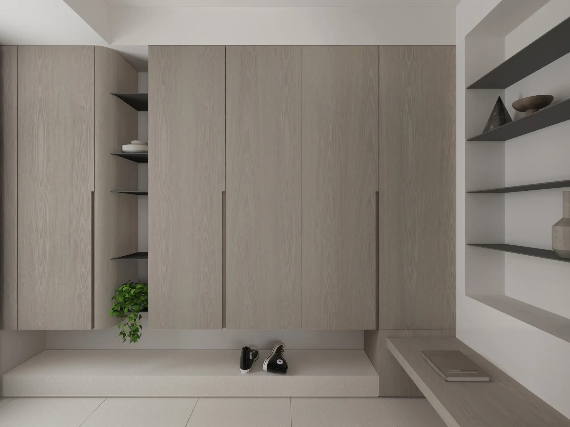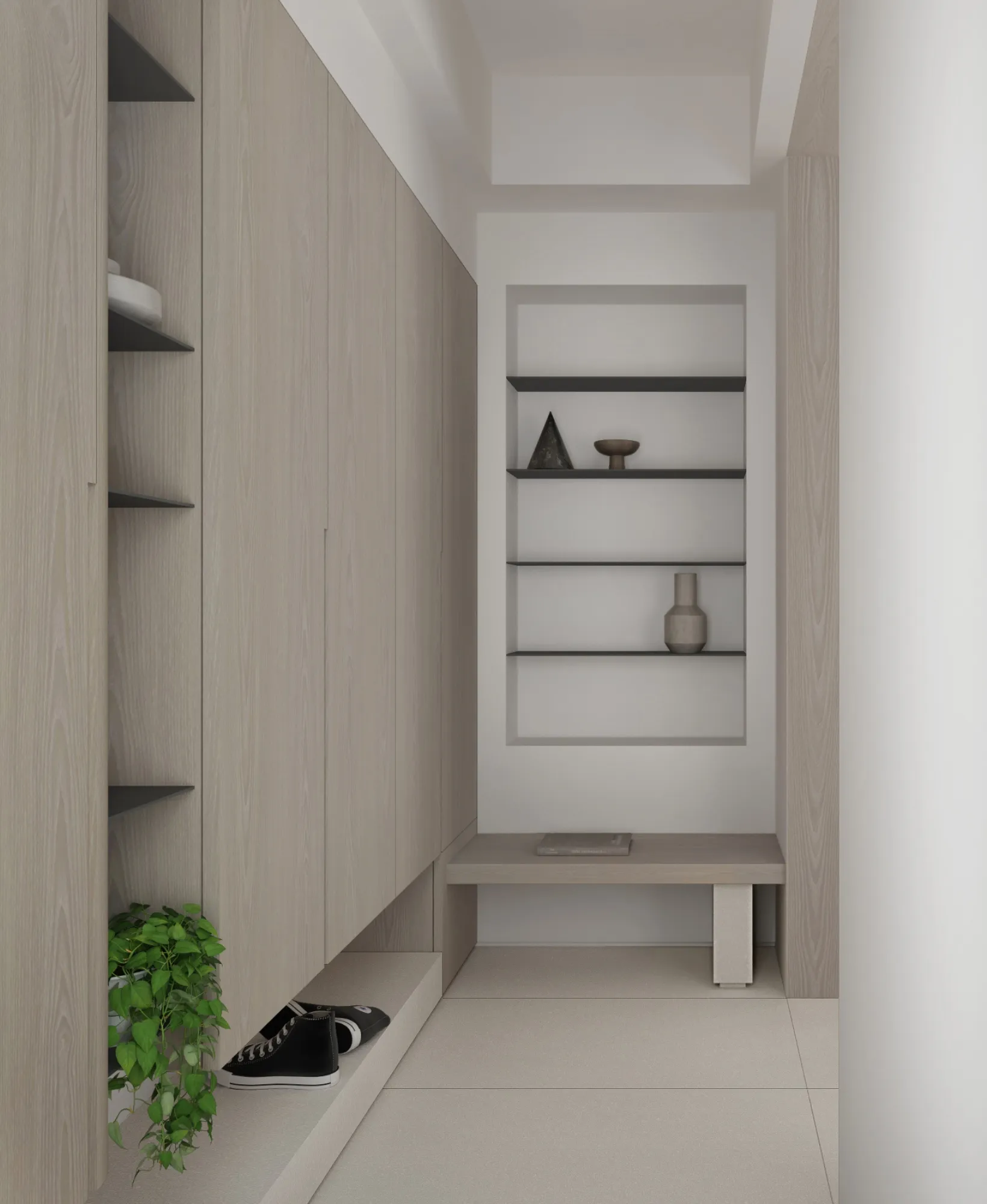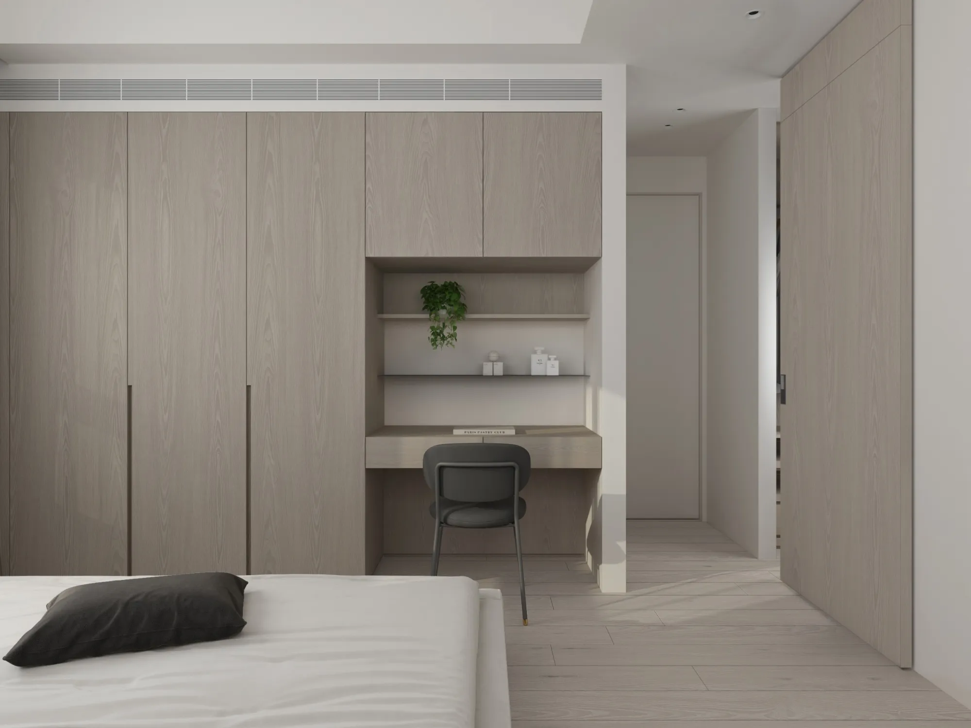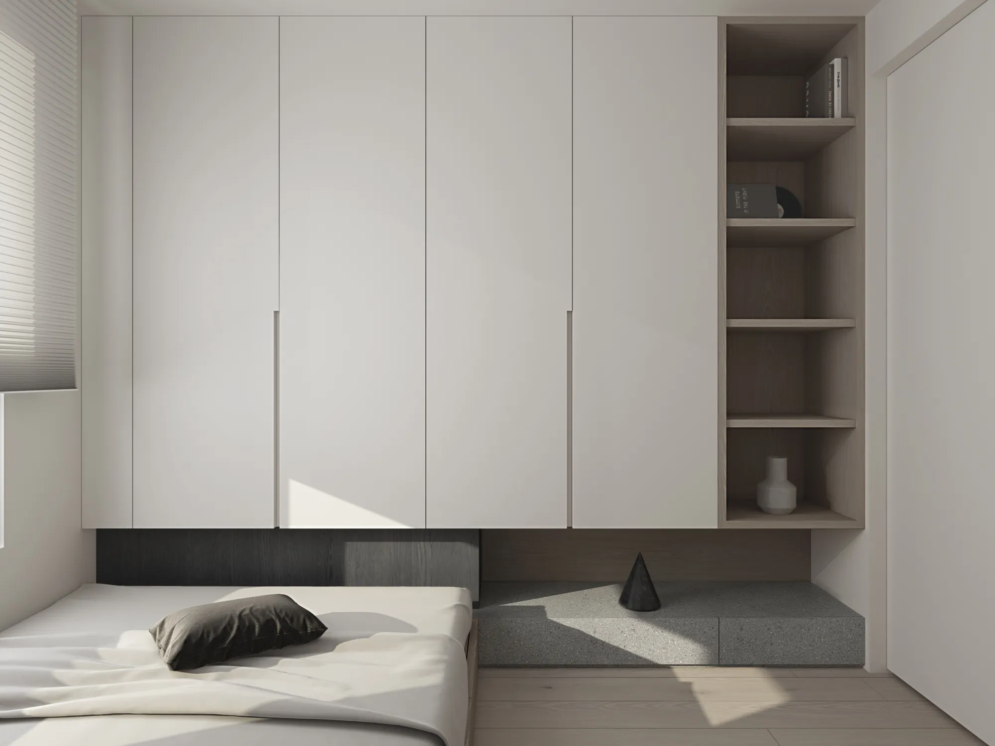 Milky white injects purity and brightness into the space, providing an ethereal background, and warm wood tones different style effects. White has the characteristics of high brightness and low saturation. It can reflect most of the light, making the space appear brighter and more spacious. It can also reduce the temperature of the space and a light and harmonious atmosphere.The circular arches connect different areas together, weakening the sharp right angles of the original space, allowing residents to feel the continuity and fluidity of the space.Light is a painter. Every time the sunlight enters the window, it becomes the beginning of a painting, injecting visual poetry into the space. Through the changes of light and shadow, it gives each space a unique soul.Just as colors have their own symbolic meanings, geometric shapes also have unique personalities. Each item carries a story about the past and the future, each occupying the most appropriate position and becoming an important element in the composition of the space.May the gifts of good times be slowly paved under the sun into a path of light and shadow flowing with happiness.